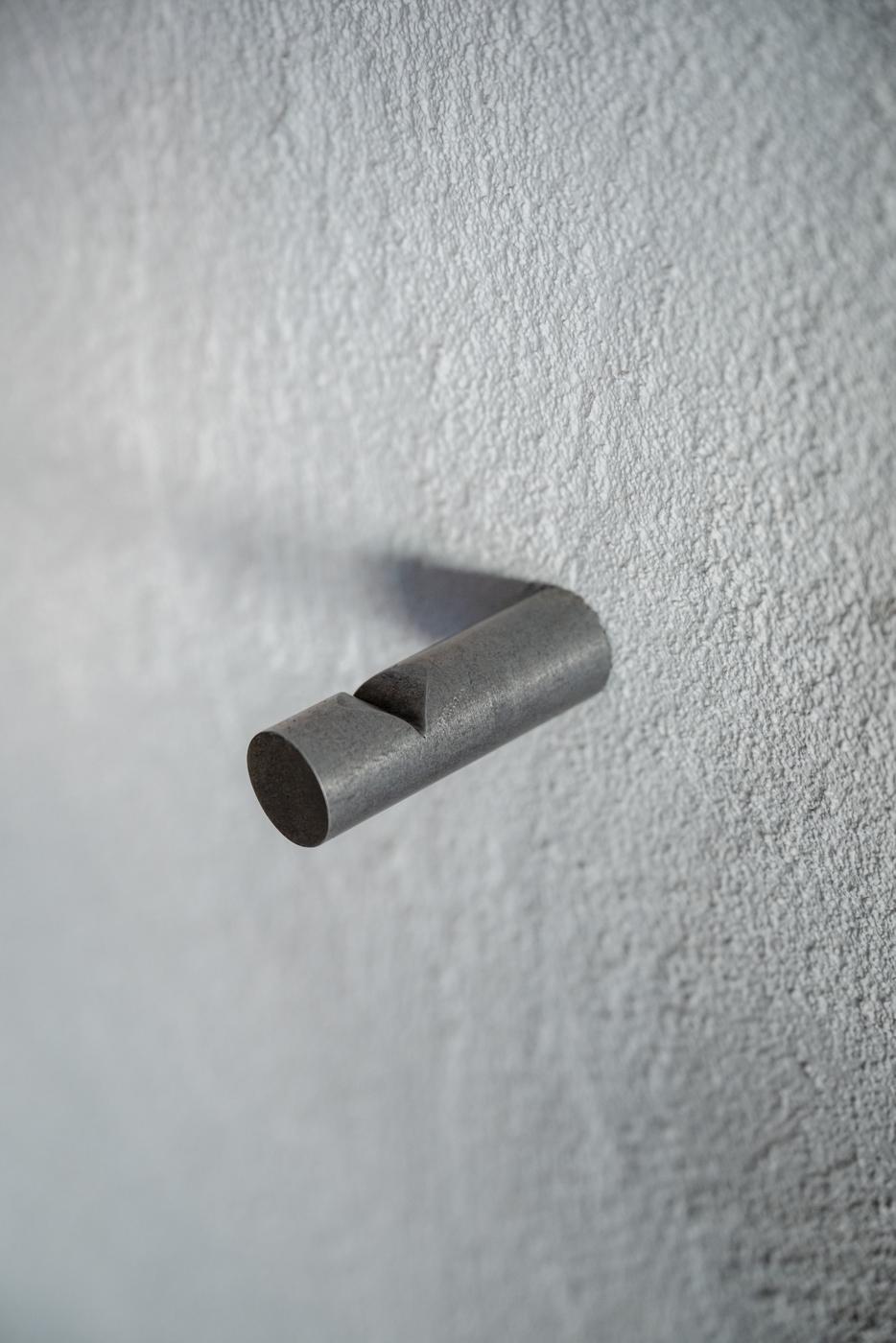 Designed for intimate moments, the robe hook entices the user through a simple yet bold design language, displaying a small recess, an opening and invitation. In a simple formal gesture, the cylinder reveals an inverted vault to form a hanging point, a vision of design as art and function.Australian Design No 202216353