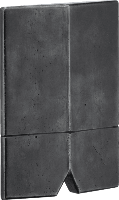 These pulls feature a profile that rises to an angled peak with a triangular cut-out subtly relieving mass at their base. Wide Guy is available in banded timber, while Slim Jim (offered in two smaller versions) is available exclusively in Patinated Bronze.