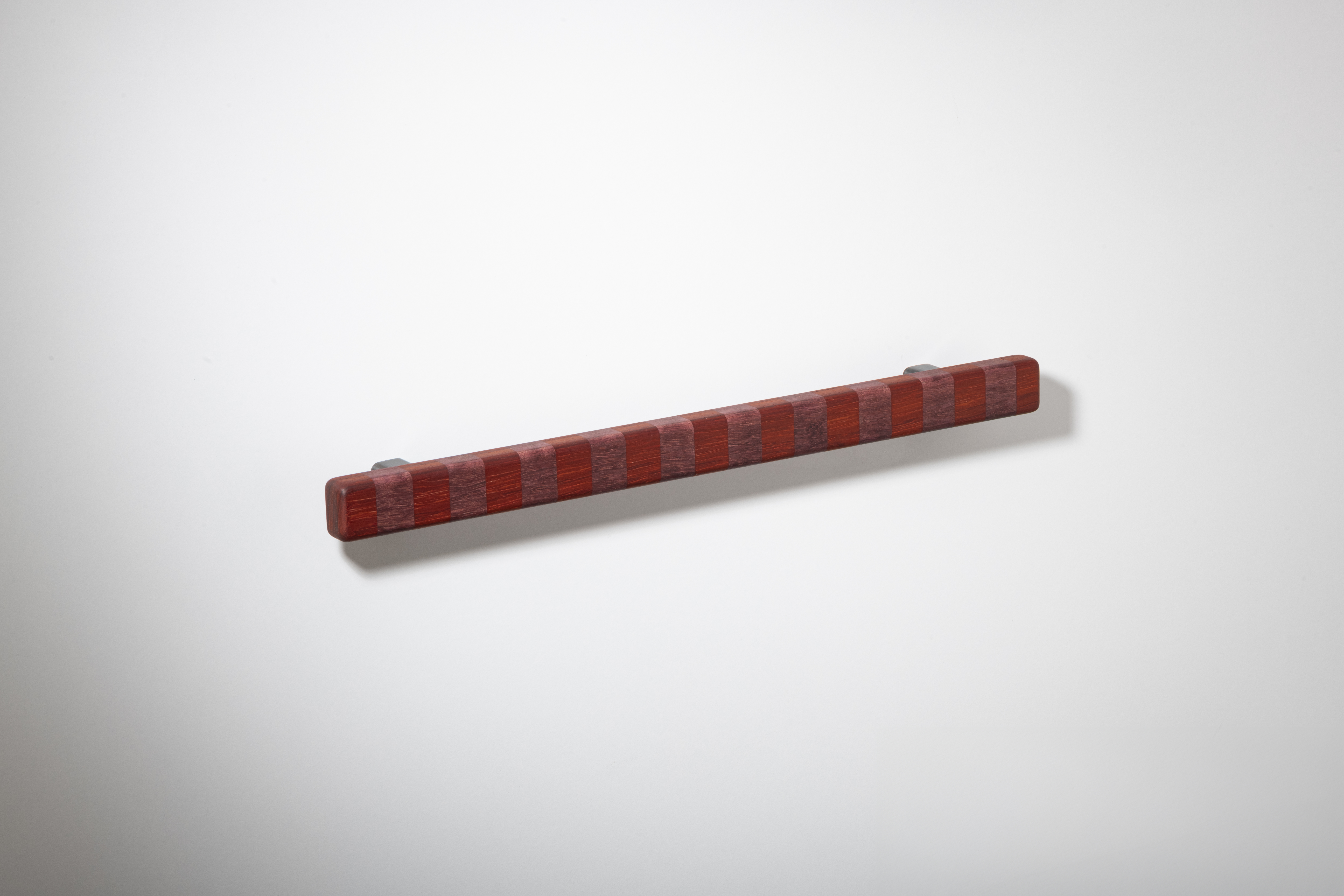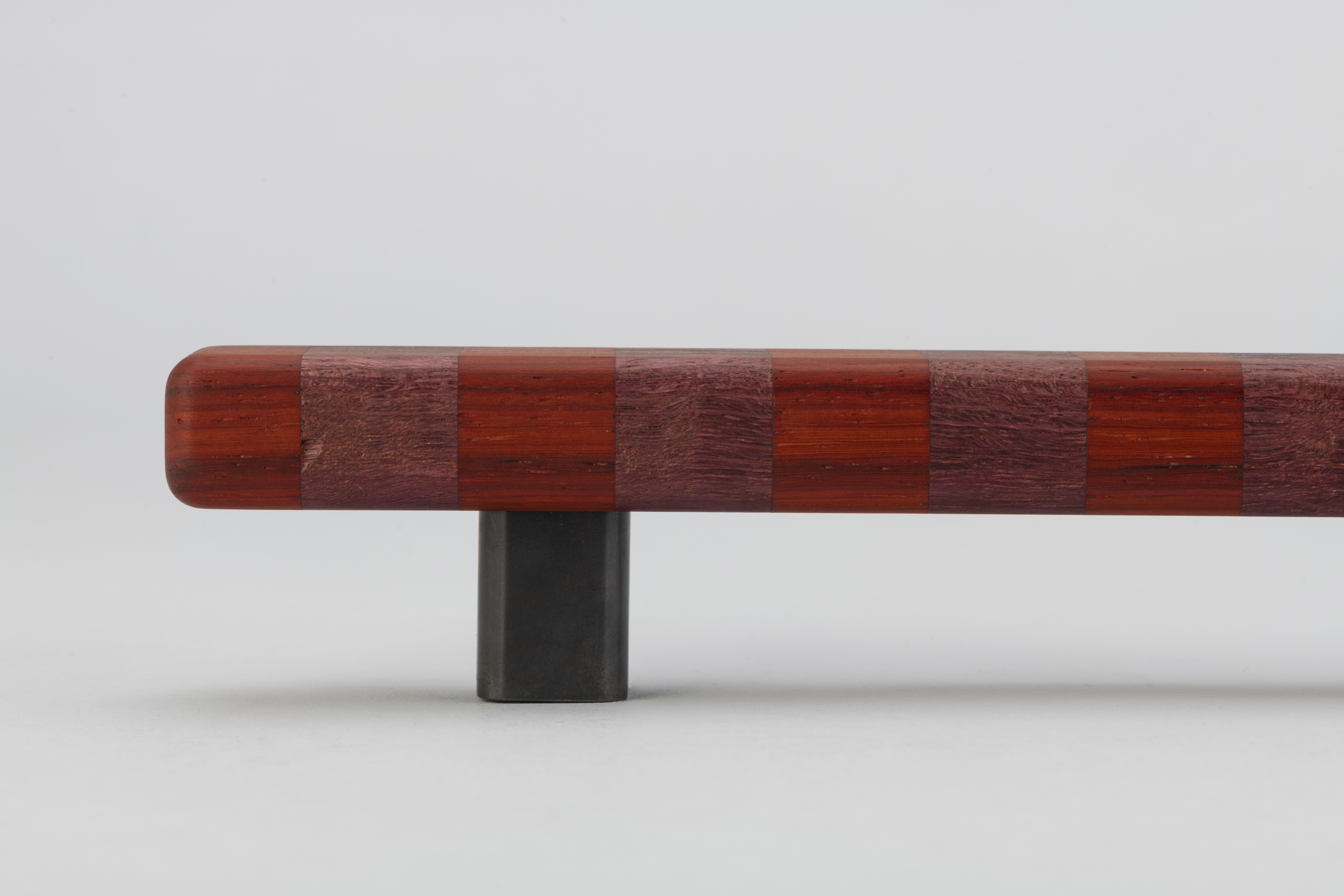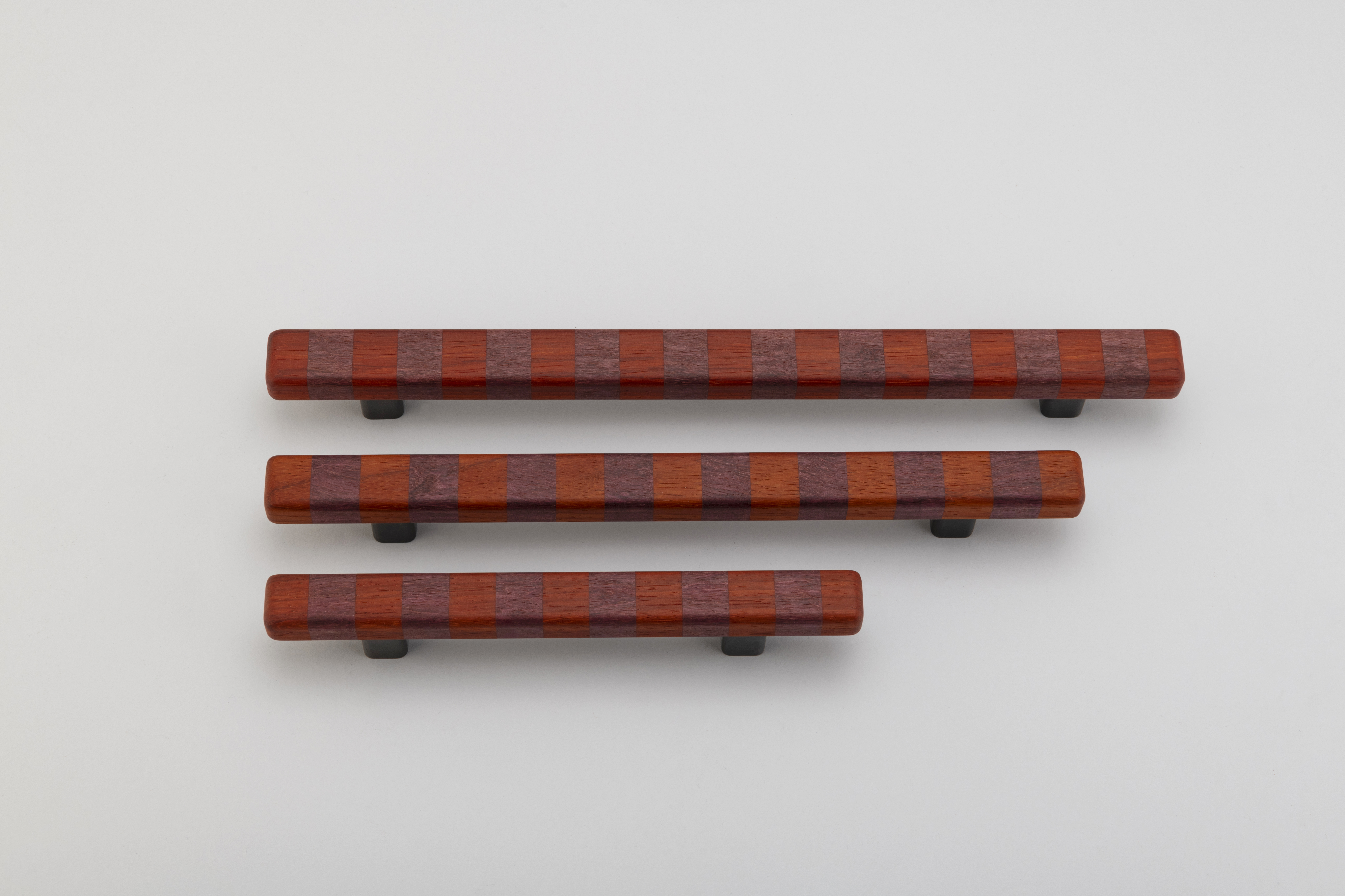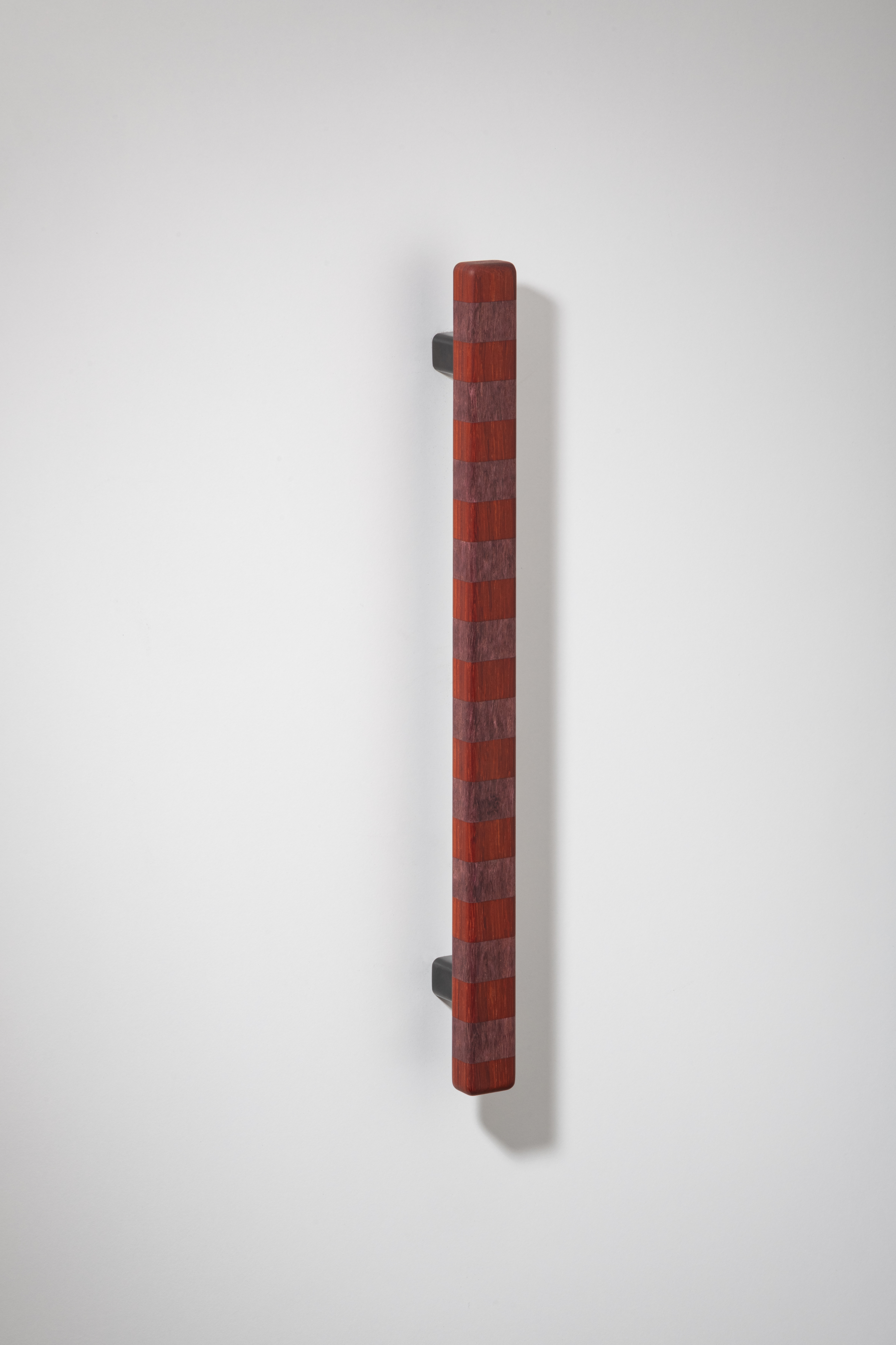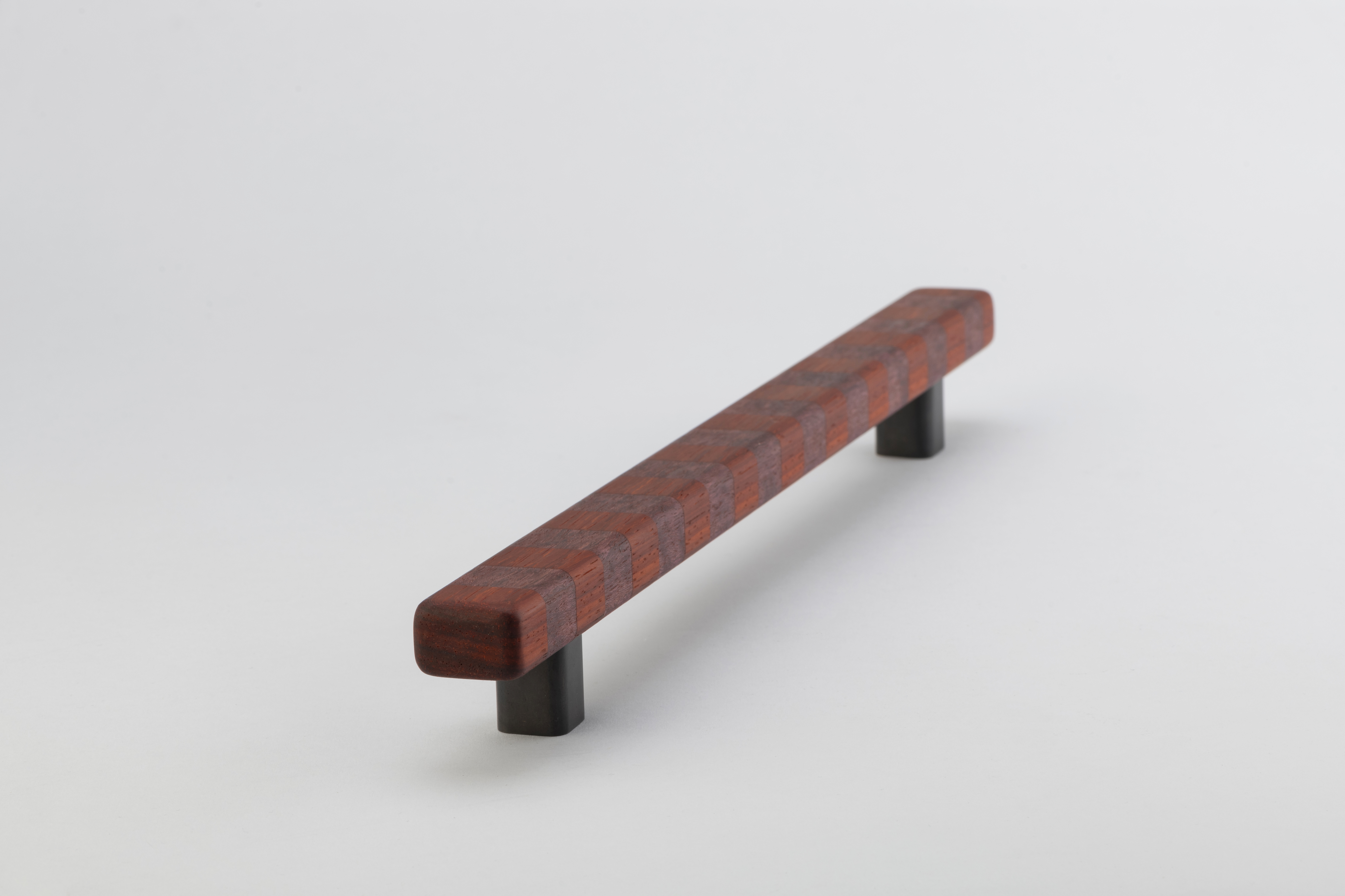 Super versatile, these flashy show ponies are named after their confident banding pattern. The solid handles are superbly hand crafted in Australia from timber species that span the globe and are offered in three striped colourways in contrasting natural tones inspired by ribbons of woodgrain. They range in intensity from deep brown paired with blonde or an earthy red shade, to more vibrant bands marrying rich aubergine and tangerine for bolder statements and will deepen tonally over time thanks to their natural oils working their magic. Offered in three sizes, they can attach to cupboard or drawer surfaces either vertically or horizontally. Smooth to the touch, they are an easy grab upon surfaces that invite constant interaction. This product features Patinated Bronze legs and comes with rear fixings.