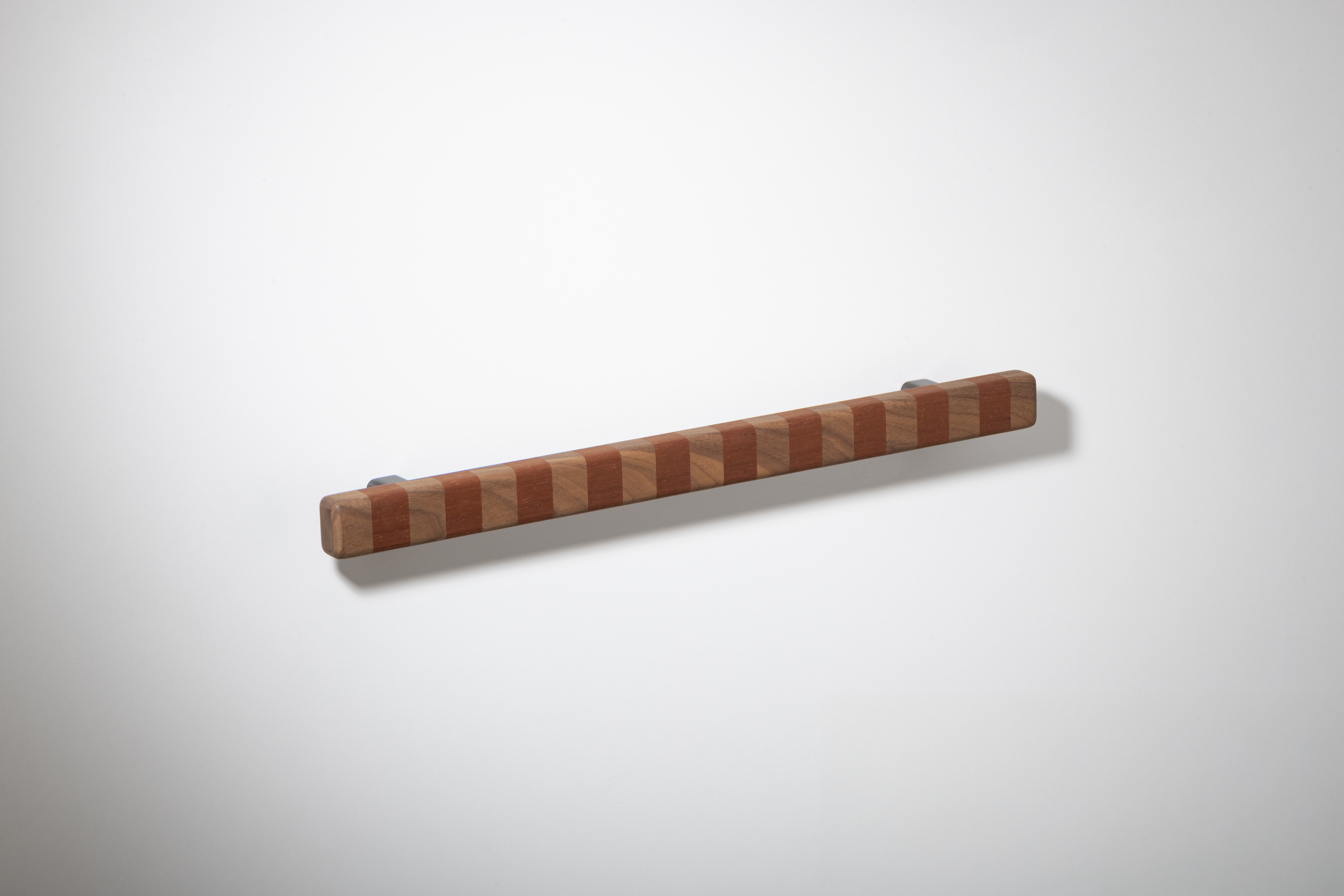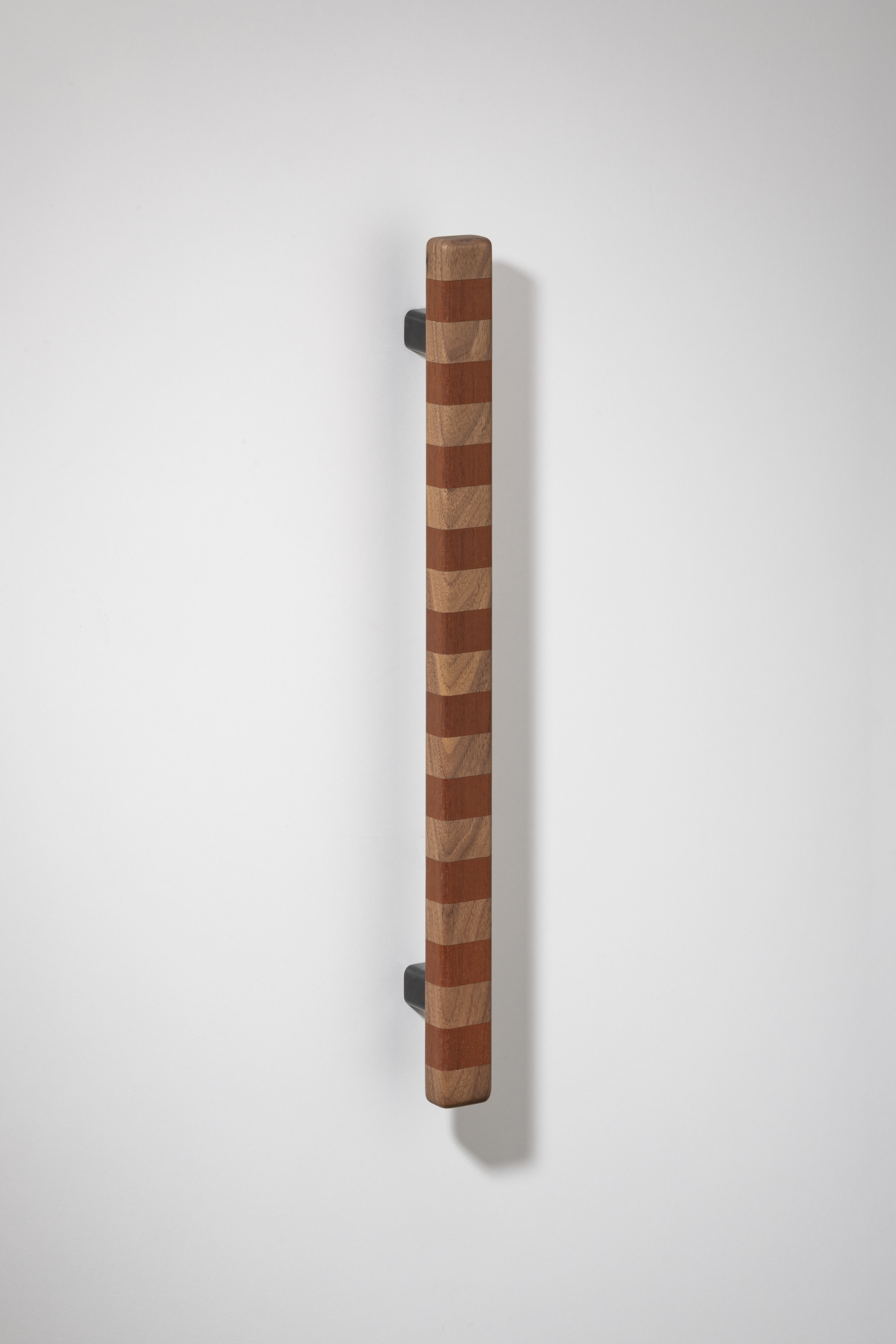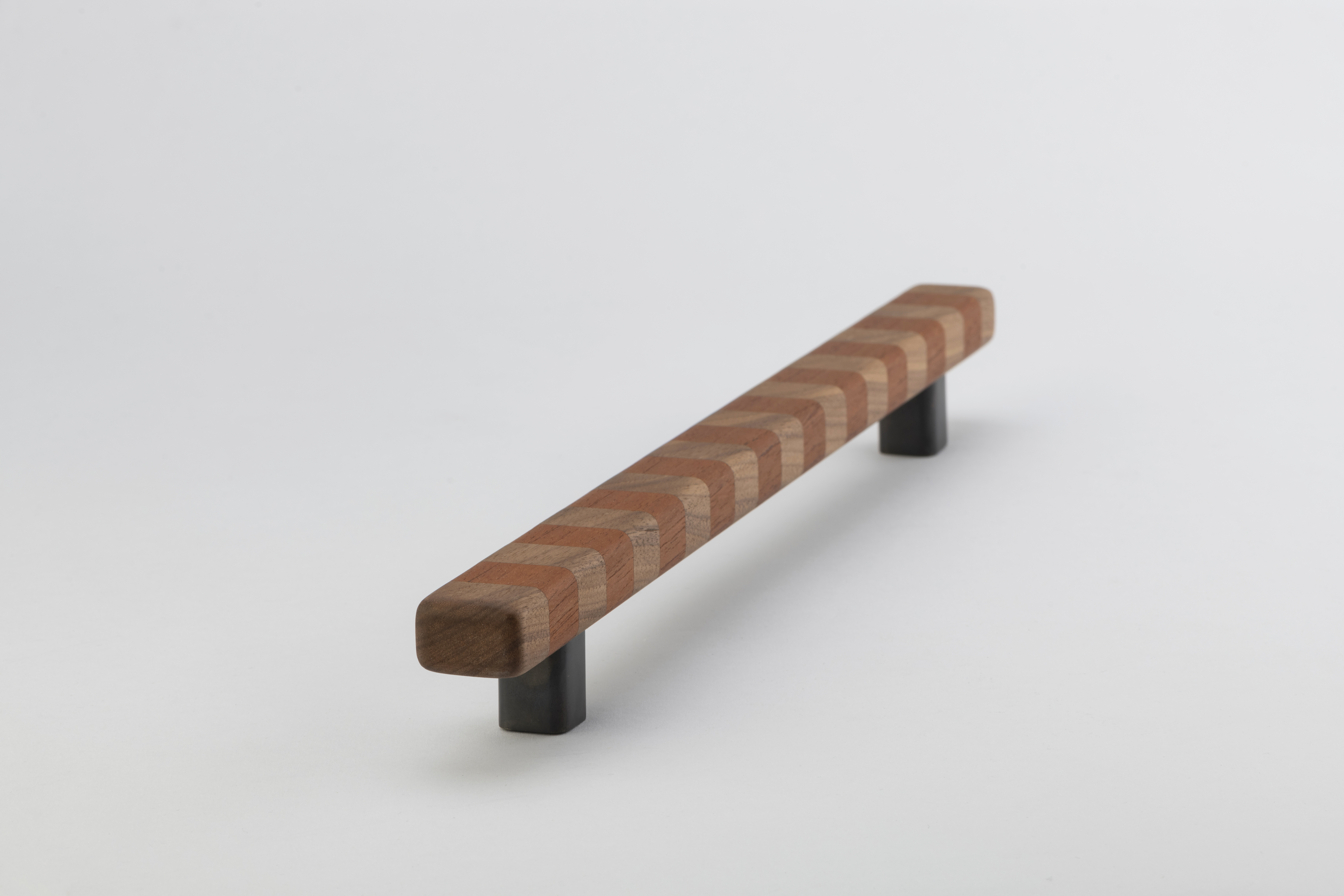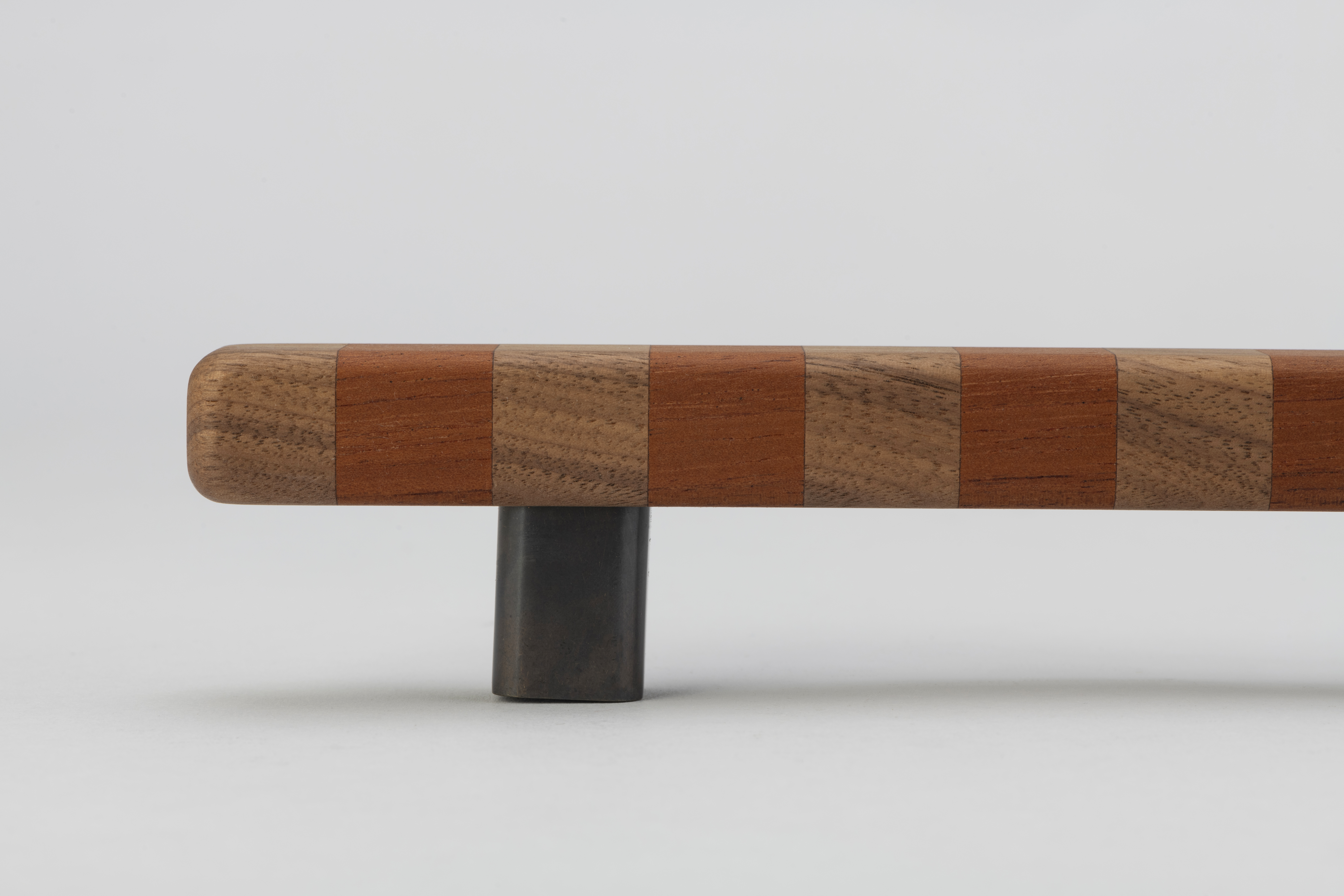 Super versatile, these flashy show ponies are named after their confident banding pattern. The solid handles are superbly hand crafted in Australia from timber species that span the globe and are offered in three striped colourways in contrasting natural tones inspired by ribbons of woodgrain. They range in intensity from deep brown paired with blonde or an earthy red shade, to more vibrant bands marrying rich aubergine and tangerine for bolder statements and will deepen tonally over time thanks to their natural oils working their magic. Offered in three sizes, they can attach to cupboard or drawer surfaces either vertically or horizontally. Smooth to the touch, they are an easy grab upon surfaces that invite constant interaction. This product features Patinated Bronze legs and comes with rear fixings.