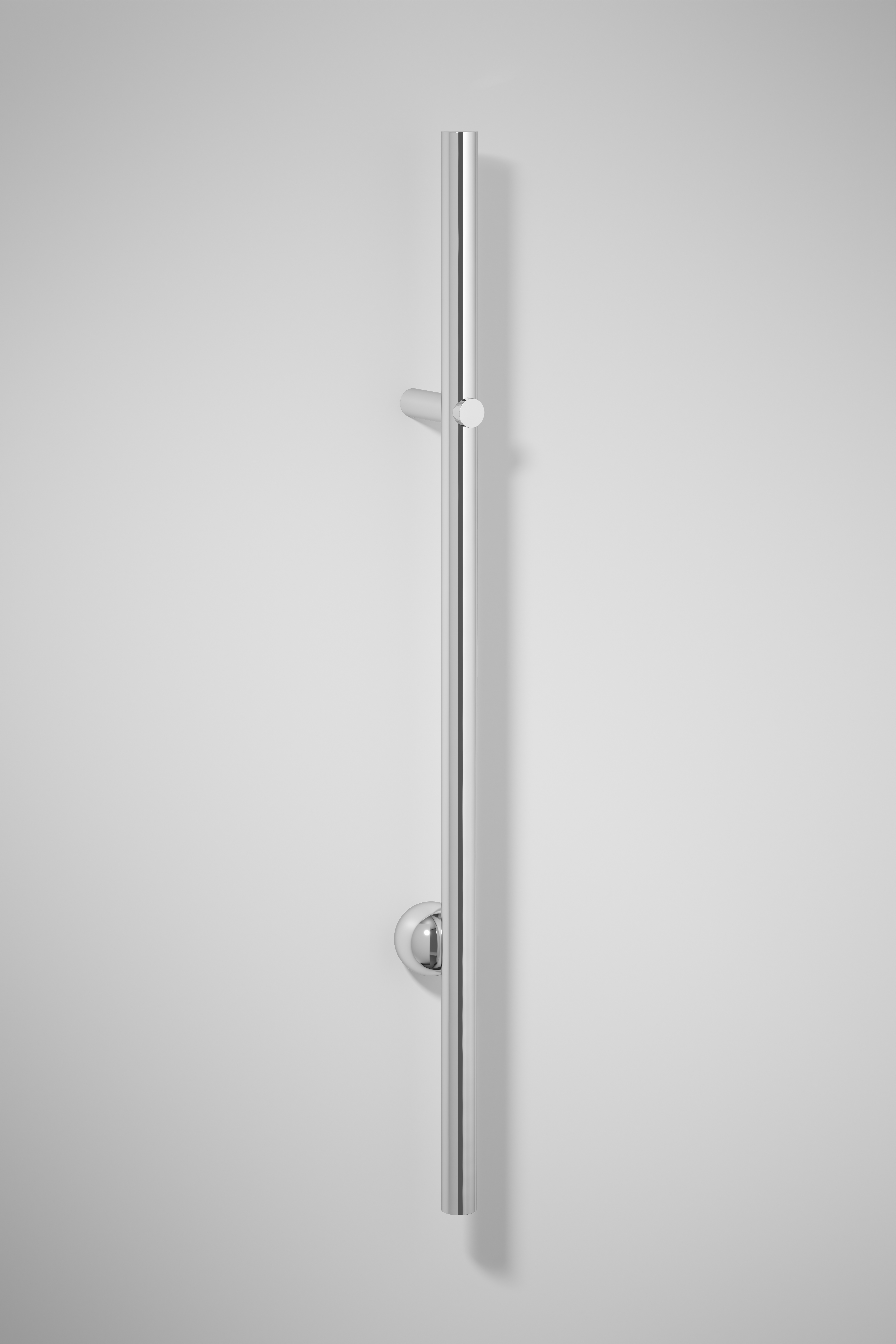The Futurismo Pull combines geometric precision with 20th-century Futurist design. Its lengthened cylindrical form echoes the bold, subversive lines of the Futurismo Lever, with an unexpected sphere adding contrast and balance. This statement pull extends the application of the Futurismo Collection to the front entry or appliance applications, allowing for a unified presence across projects.