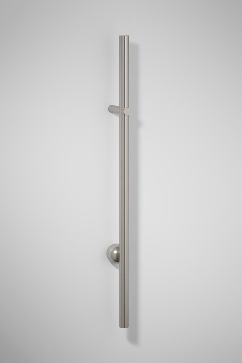 The Futurismo Pull combines geometric precision with 20th-century Futurist design. Its lengthened cylindrical form echoes the bold, subversive lines of the Futurismo Lever, with an unexpected sphere adding contrast and balance. This statement pull extends the application of the Futurismo Collection to the front entry or appliance applications, allowing for a unified presence across projects.