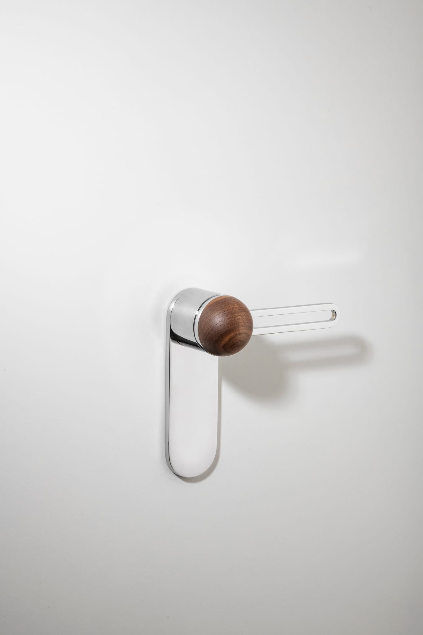 The H01 Lever on Backplate design showcases an open-frame lever atop an oval backplate. With an option for an integrated lock mechanism, the design is low-profile, accented with Art Deco-inspired curves.
