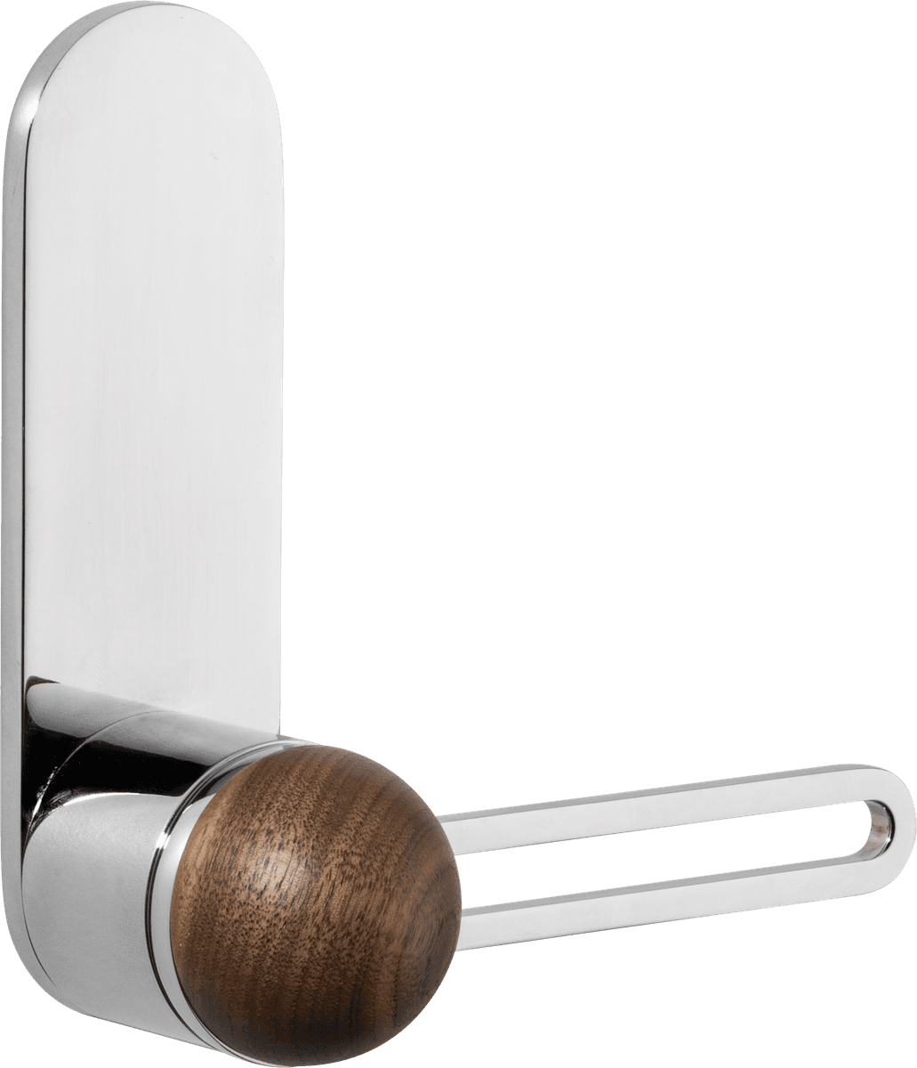 The H01 Lever on Backplate design showcases an open-frame lever atop an oval backplate. With an option for an integrated lock mechanism, the design is low-profile, accented with Art Deco-inspired curves.