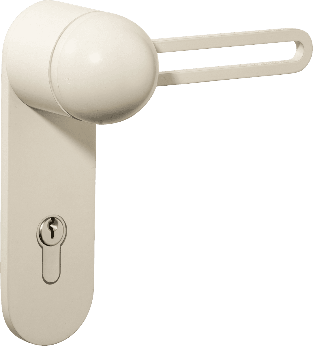 The H01 Lever on Backplate design showcases an open-frame lever atop an oval backplate. With an option for an integrated lock mechanism, the design is low-profile, accented with Art Deco-inspired curves.