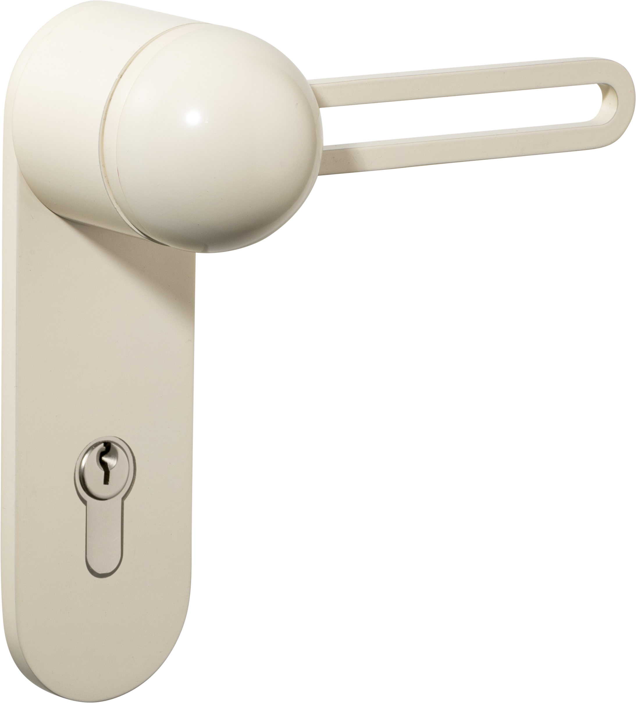 The H01 Lever on Backplate design showcases an open-frame lever atop an oval backplate. With an option for an integrated lock mechanism, the design is low-profile, accented with Art Deco-inspired curves.