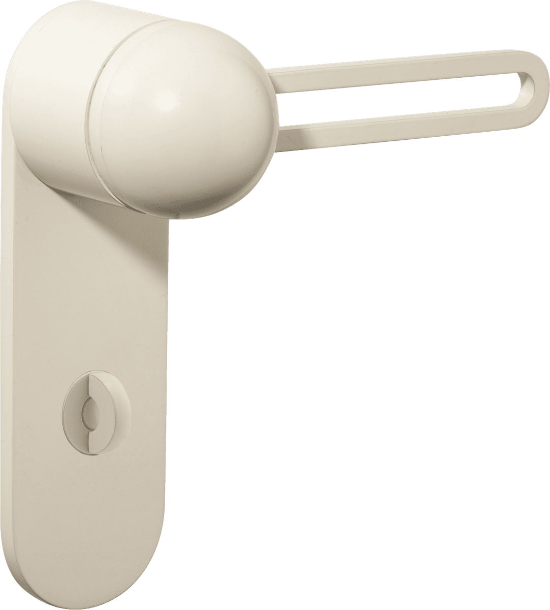 The H01 Lever on Backplate design showcases an open-frame lever atop an oval backplate. With an option for an integrated lock mechanism, the design is low-profile, accented with Art Deco-inspired curves.