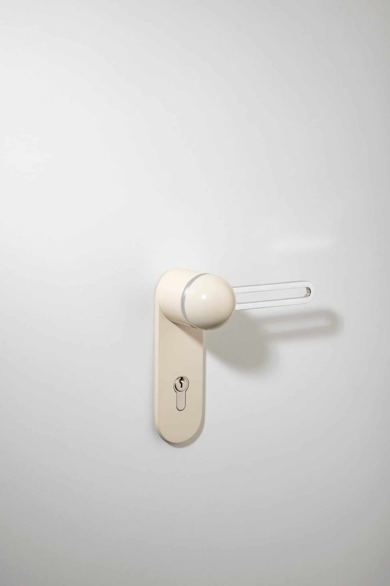 The H01 Lever on Backplate design showcases an open-frame lever atop an oval backplate. With an option for an integrated lock mechanism, the design is low-profile, accented with Art Deco-inspired curves.