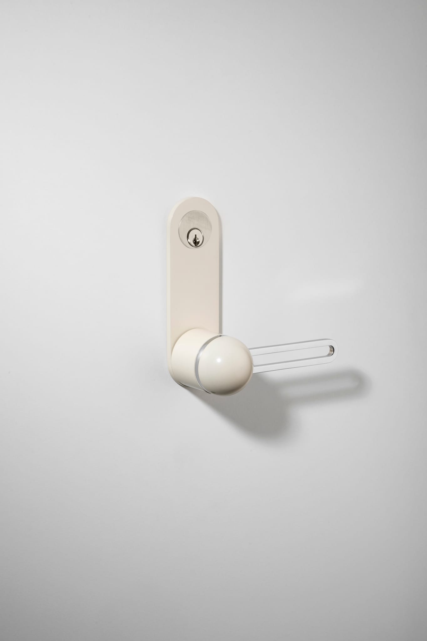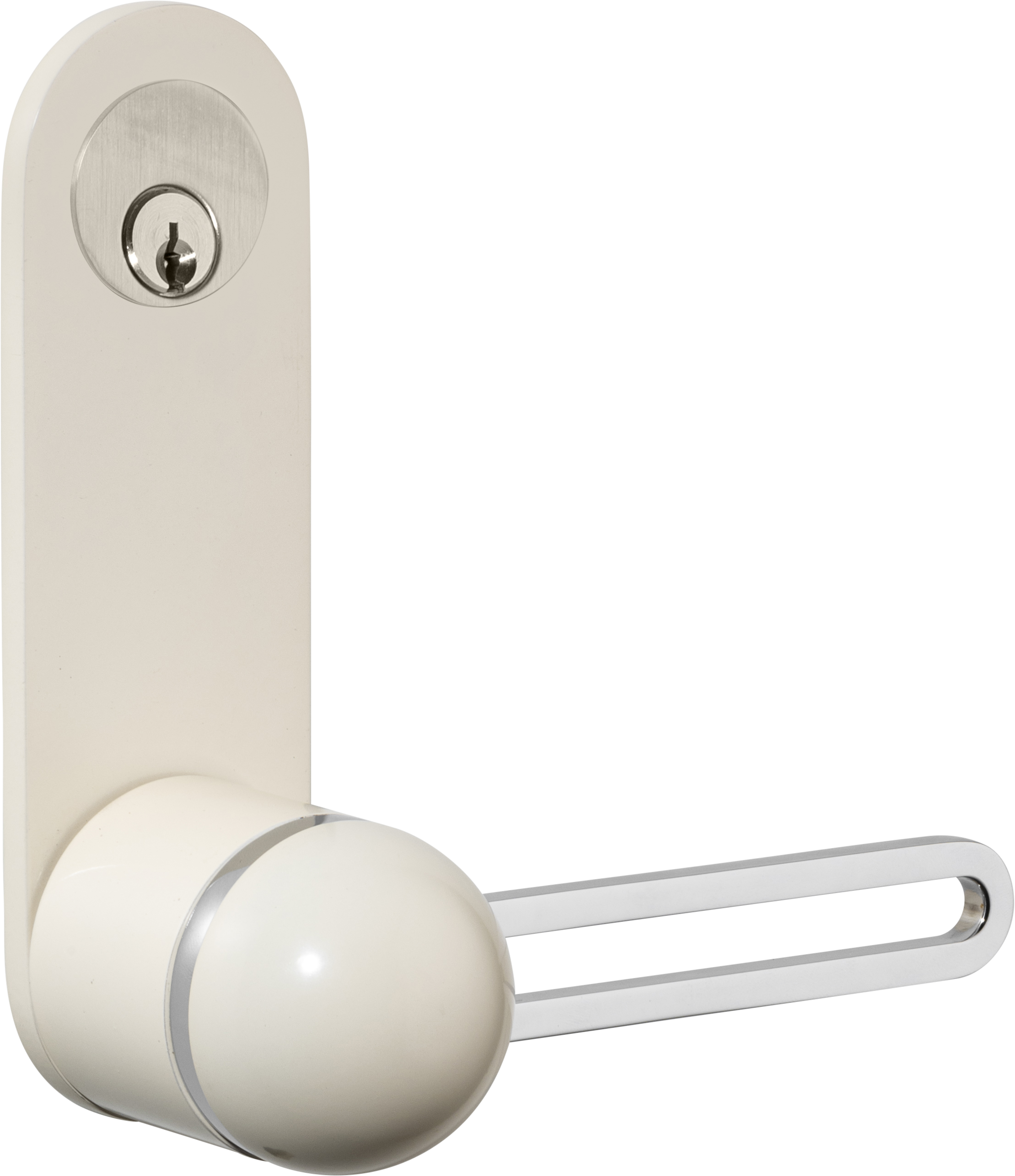The H01 Lever on Backplate design showcases an open-frame lever atop an oval backplate. With an option for an integrated lock mechanism, the design is low-profile, accented with Art Deco-inspired curves.
