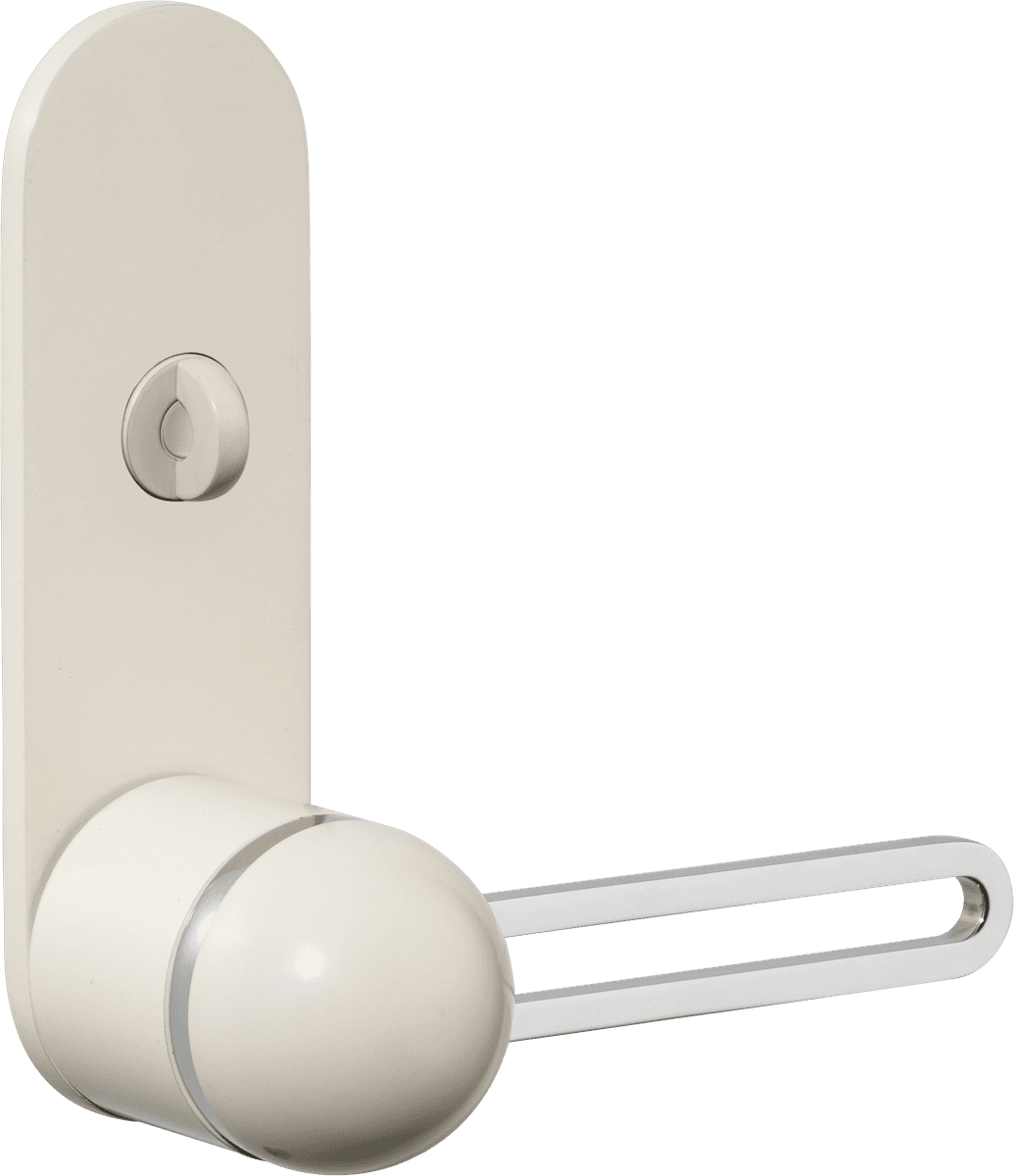 The H01 Lever on Backplate design showcases an open-frame lever atop an oval backplate. With an option for an integrated lock mechanism, the design is low-profile, accented with Art Deco-inspired curves.