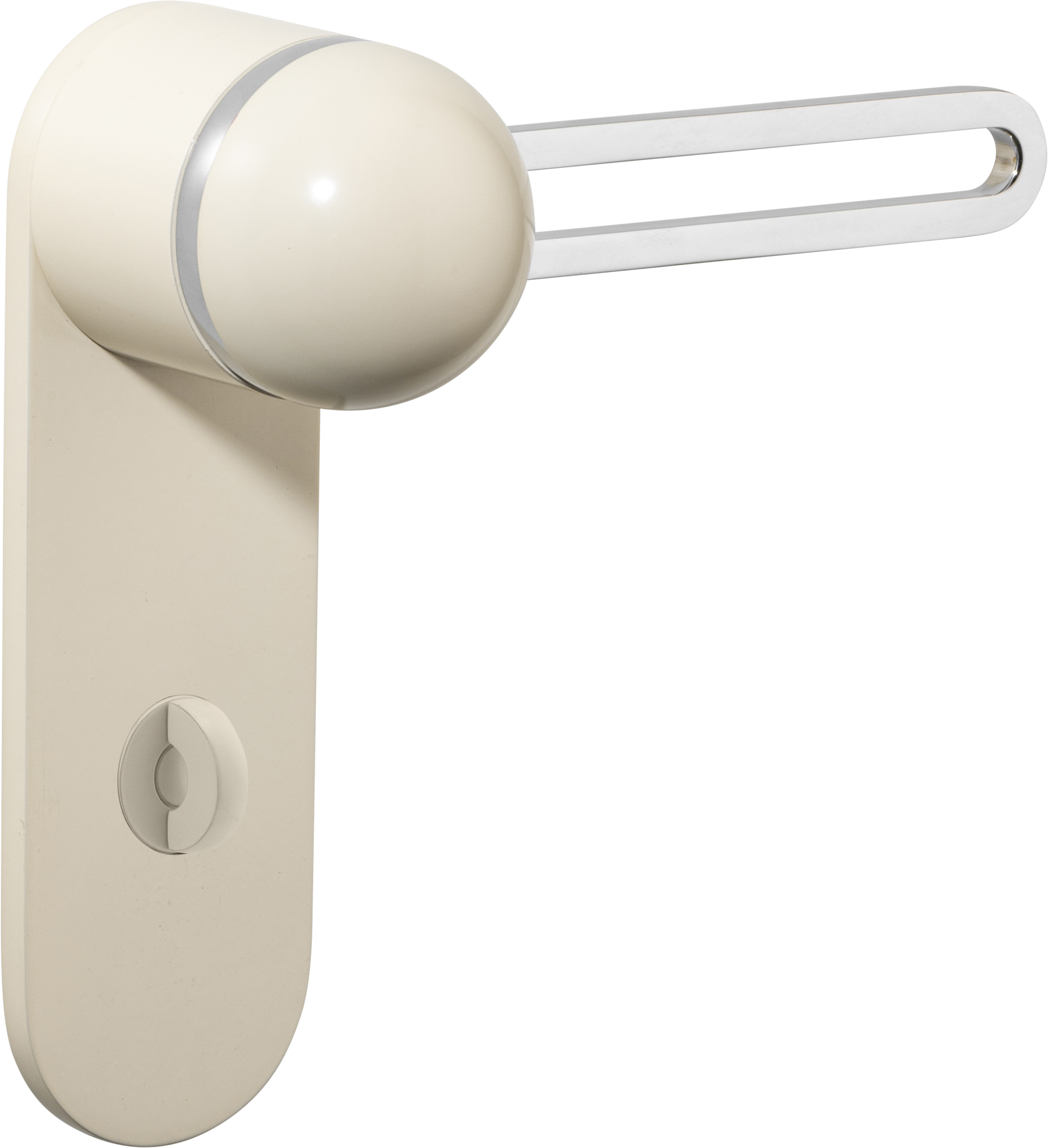 The H01 Lever on Backplate design showcases an open-frame lever atop an oval backplate. With an option for an integrated lock mechanism, the design is low-profile, accented with Art Deco-inspired curves.
