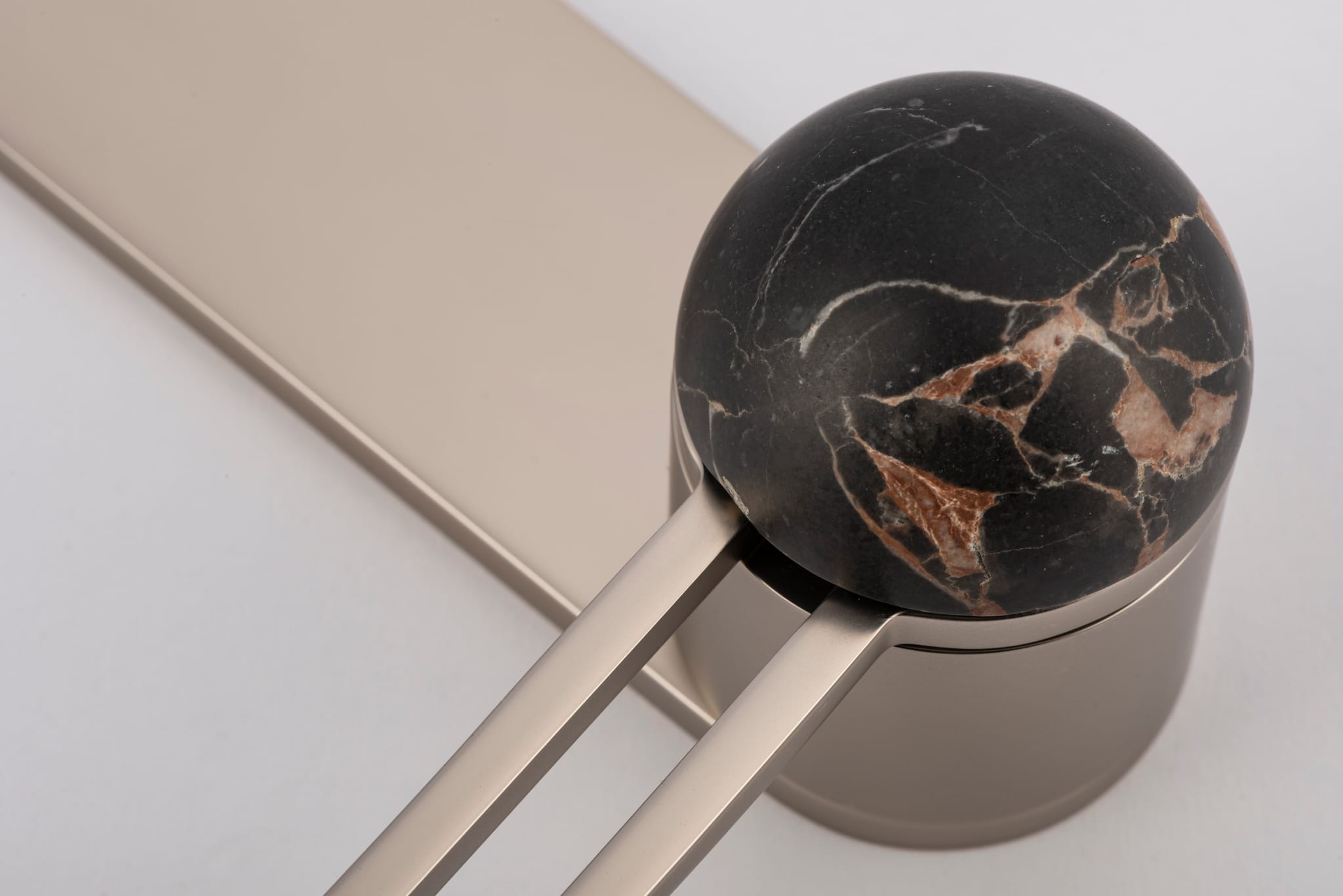 With a rich and intricate grain pattern set against an onyx backdrop, Portoro Gold is a highly coveted stone. Characterised by crystalline geometric forms, this material brings visual and tactile complexity. Portoro Gold is reimagined for a modern aesthetic, creating a striking contrast with other materials in the collection. As with all natural materials, expect a beautiful variation in both degree and tone of veining, making each piece truly distinctive.