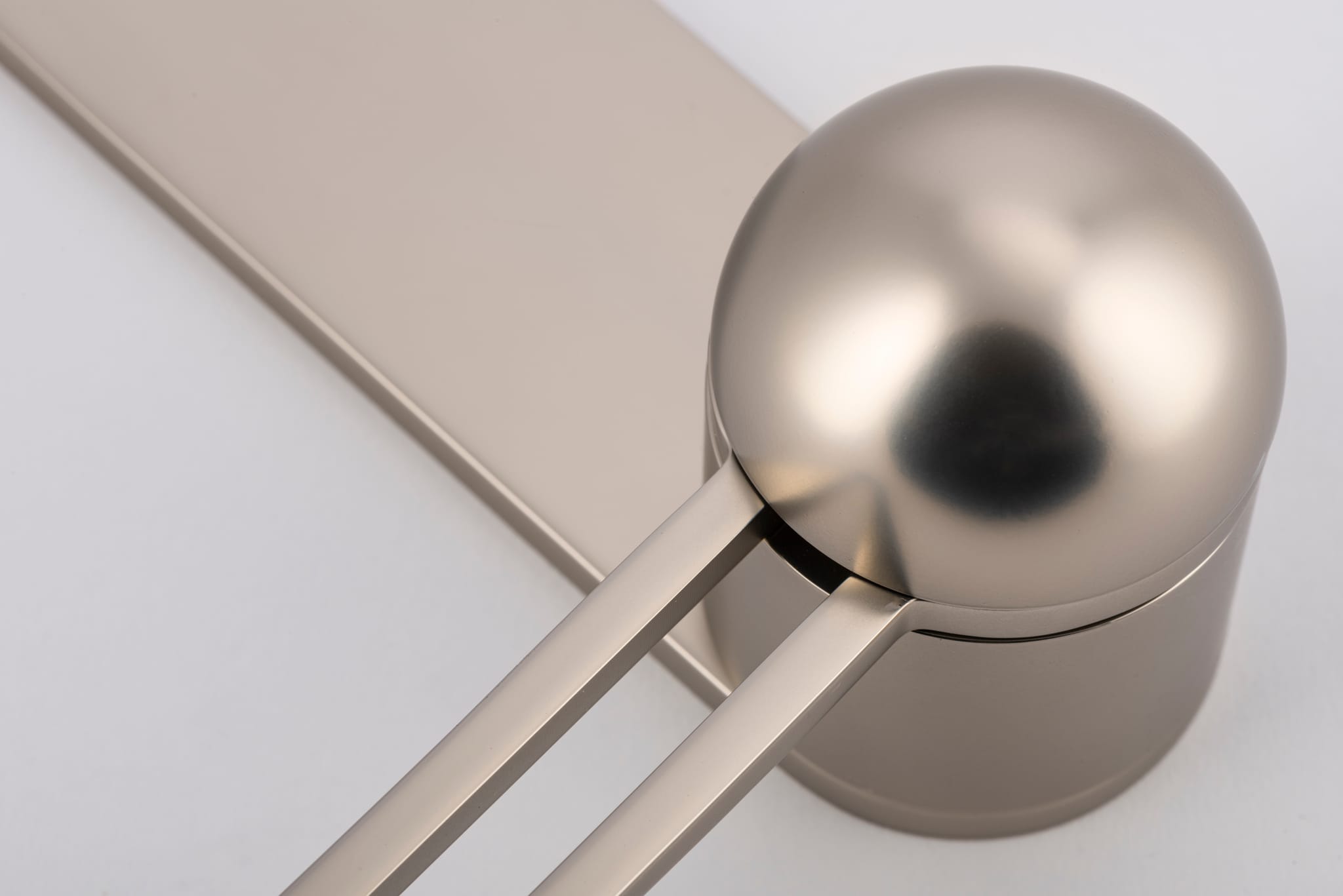 Soft to the touch yet stark in its industrial aesthetic, Smooth Nickel is a truly unique and distinctive finish. To achieve this finish, nickel-plated forged brass is very lightly linished, before being plated with Smooth Nickel and coated in satin lacquer. The result is a sleek and commanding finish that invites touch. Eye-catching in its distinction, Smooth Nickel sits as comfortably among lush timber as it does harsh concrete.