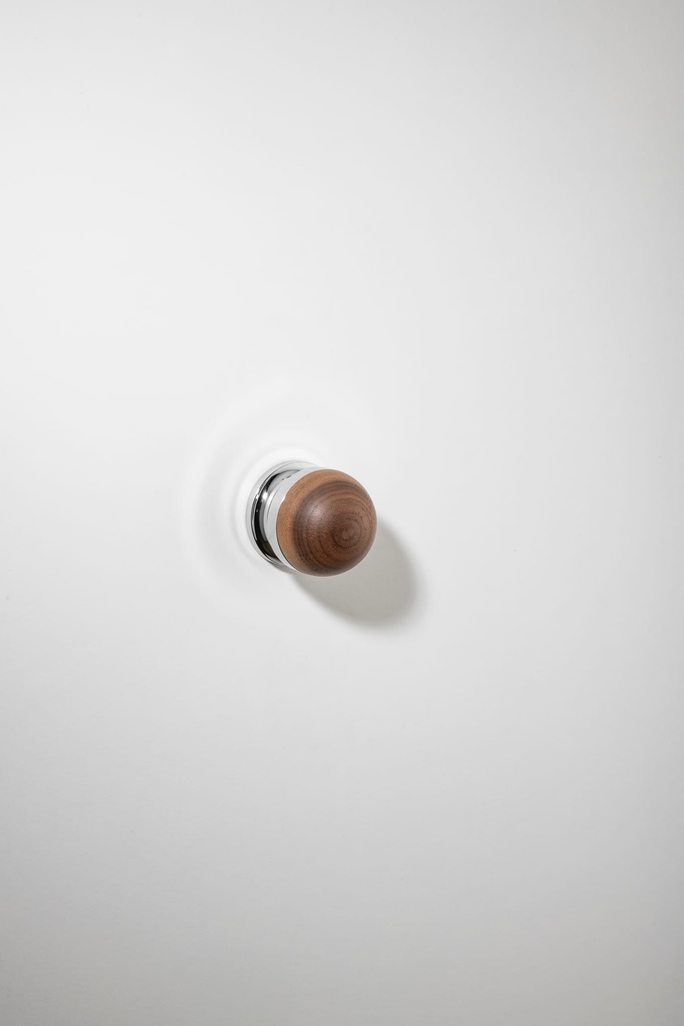 The H02 Knob on Rose is both compact and impactful, featuring a rose fitting, a connecting collar, and a sleek, dome-shaped top. Its carefully proportioned dome fits comfortably in the hand, ensuring a secure grip.