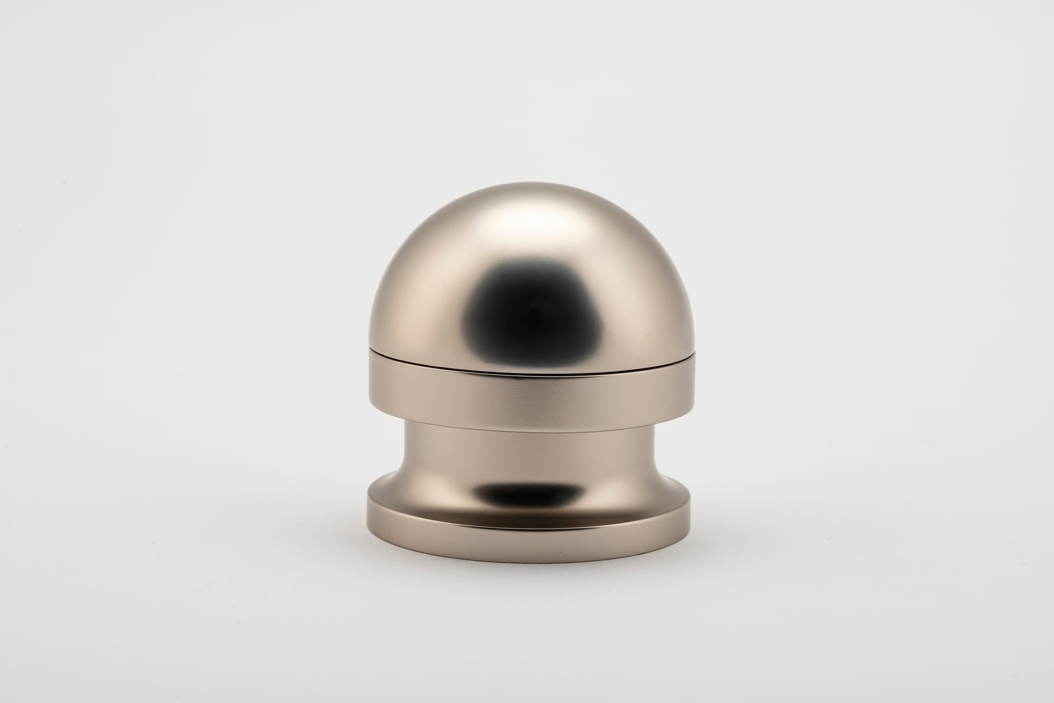 The H02 Knob on Rose is both compact and impactful, featuring a rose fitting, a connecting collar, and a sleek, dome-shaped top. Its carefully proportioned dome fits comfortably in the hand, ensuring a secure grip.