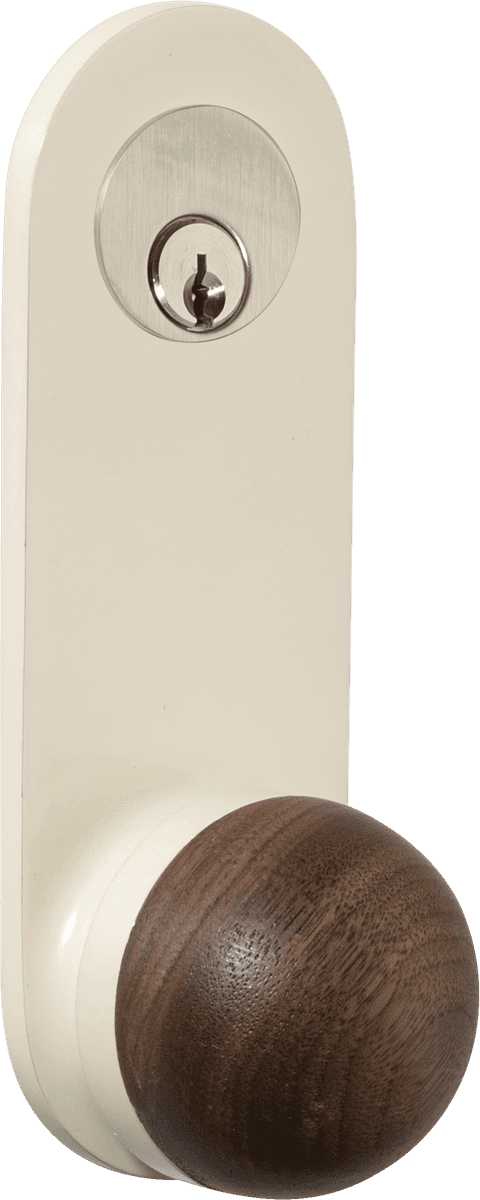 The H02 Knob on Backplate enhances the core knob design by adding a backplate extension. The combination of rounded and flat forms create a sophisticated aesthetic, also available with an optional integrated locking mechanism.