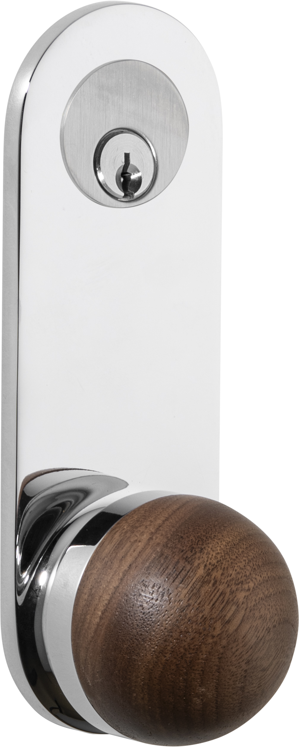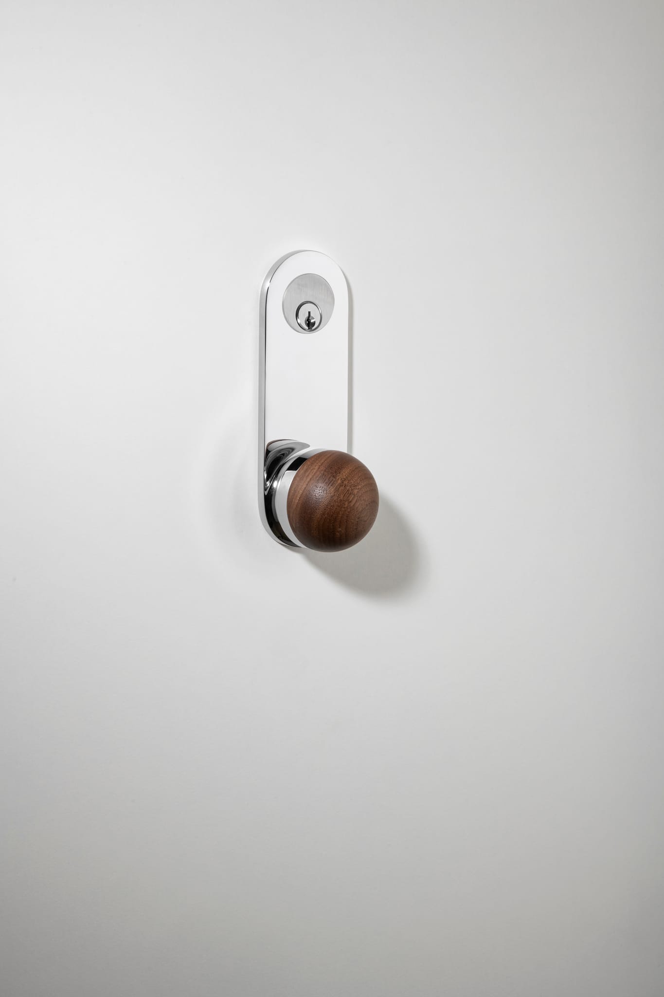 The H02 Knob on Backplate enhances the core knob design by adding a backplate extension. The combination of rounded and flat forms create a sophisticated aesthetic, also available with an optional integrated locking mechanism.