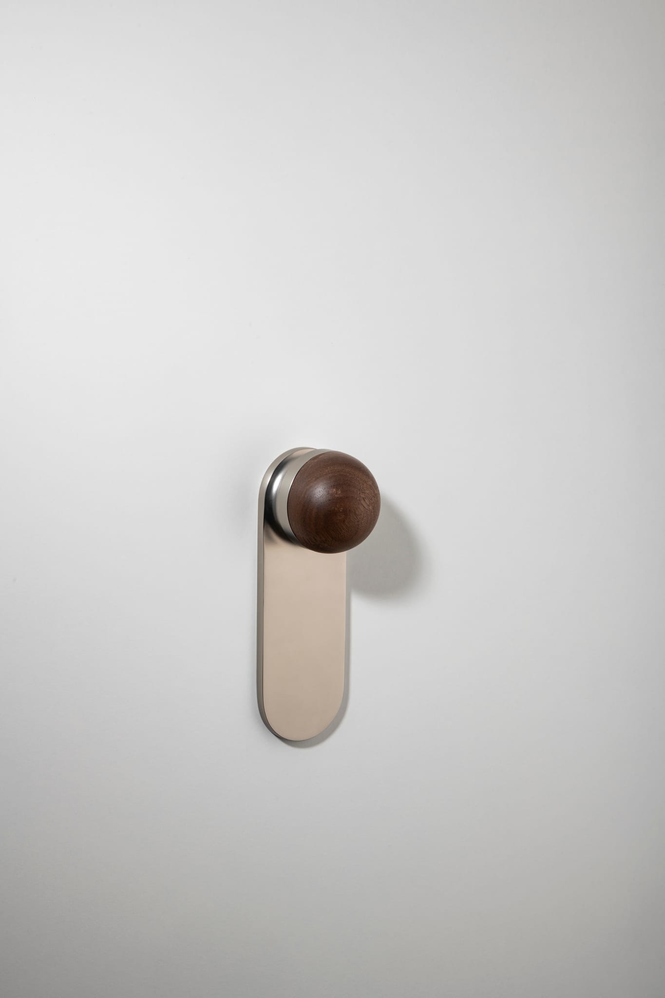 The H02 Knob on Backplate enhances the core knob design by adding a backplate extension. The combination of rounded and flat forms create a sophisticated aesthetic, also available with an optional integrated locking mechanism.