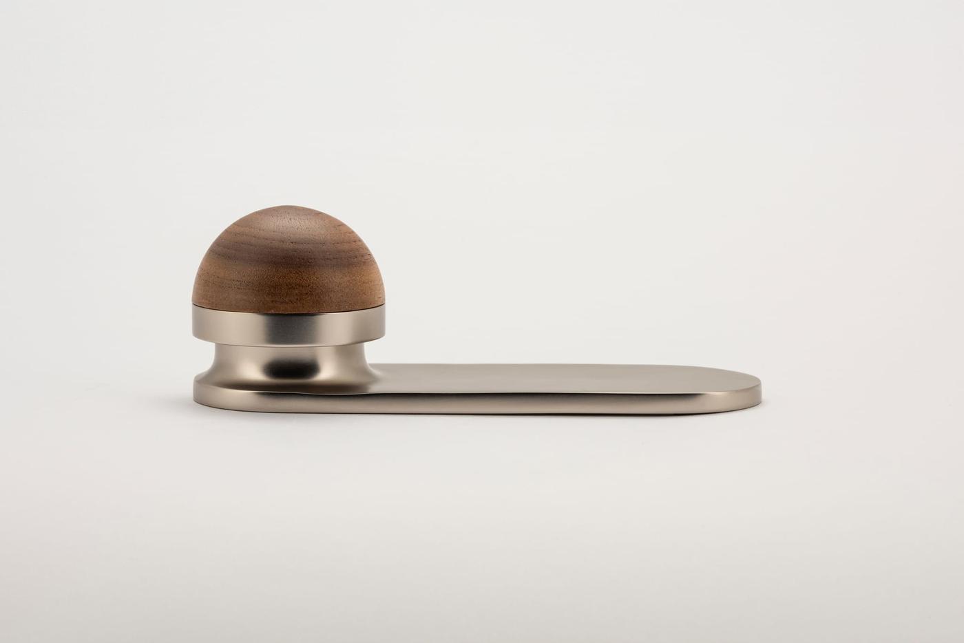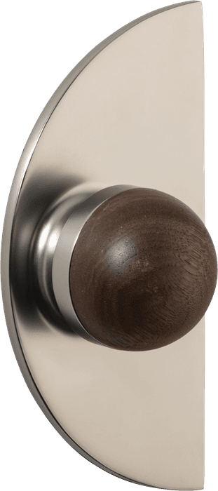 The H02 Knob on Backplate enhances the core knob design by adding a backplate extension. The combination of rounded and flat forms create a sophisticated aesthetic, also available with an optional integrated locking mechanism.