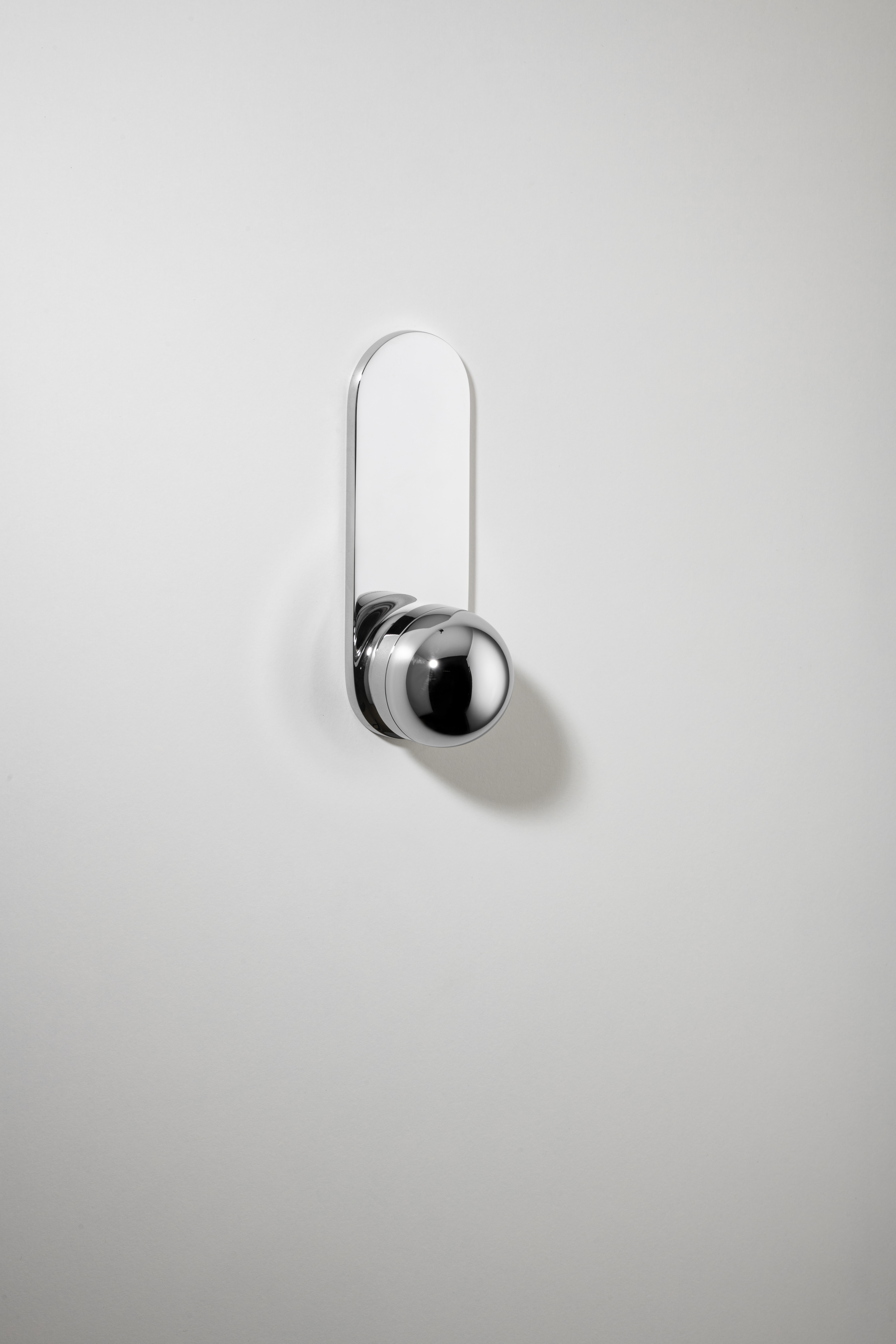 The H02 Knob on Backplate enhances the core knob design by adding a backplate extension. The combination of rounded and flat forms create a sophisticated aesthetic, also available with an optional integrated locking mechanism.