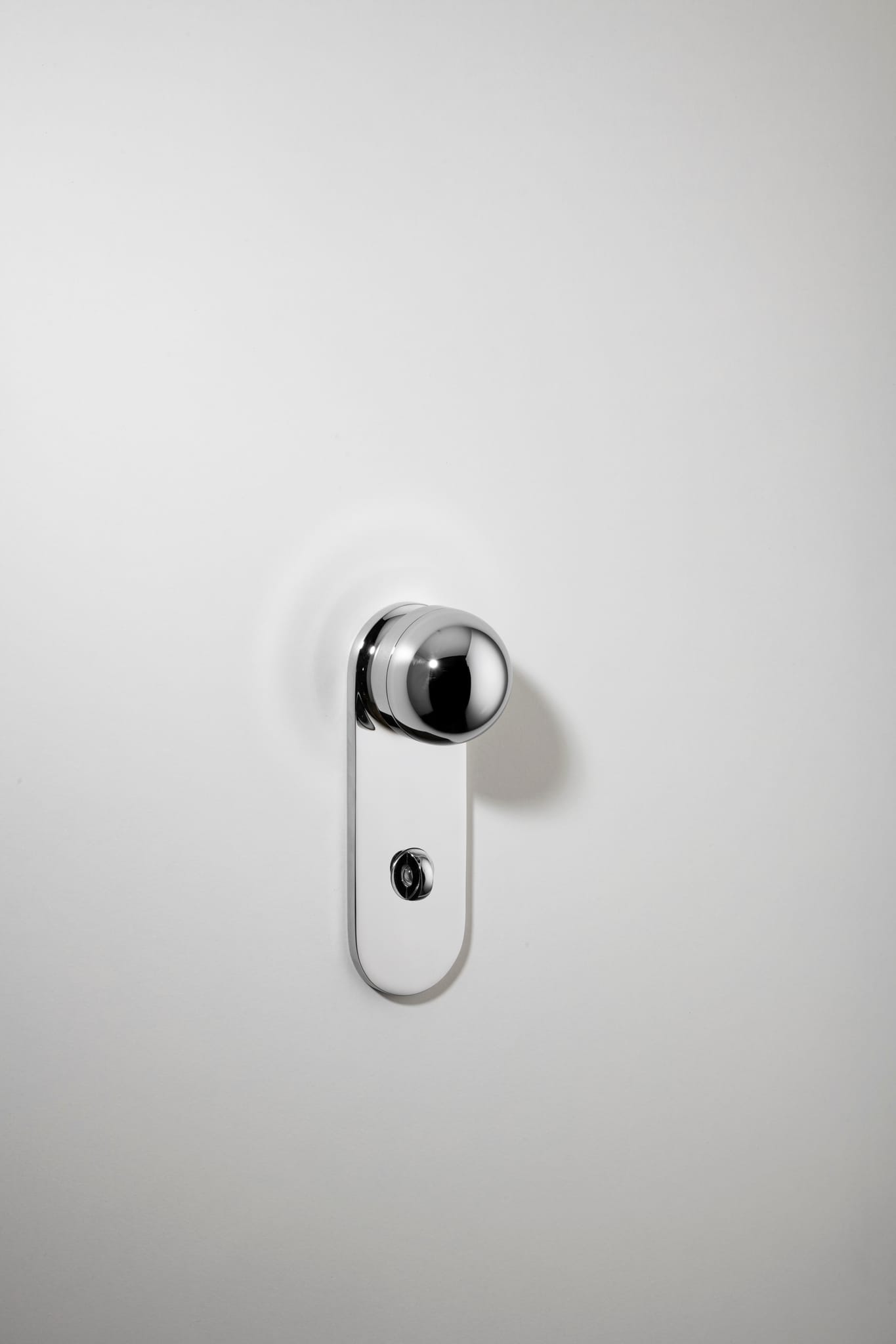 The H02 Knob on Backplate enhances the core knob design by adding a backplate extension. The combination of rounded and flat forms create a sophisticated aesthetic, also available with an optional integrated locking mechanism.