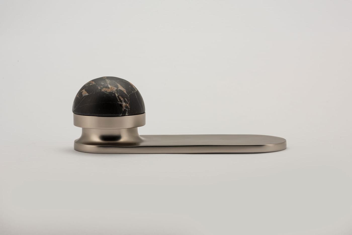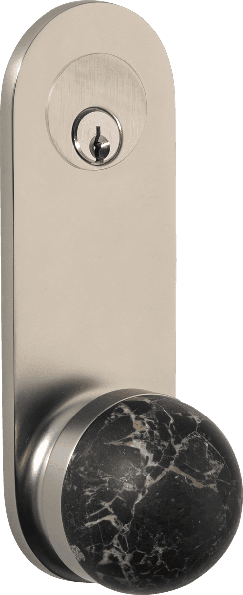The H02 Knob on Backplate enhances the core knob design by adding a backplate extension. The combination of rounded and flat forms create a sophisticated aesthetic, also available with an optional integrated locking mechanism.