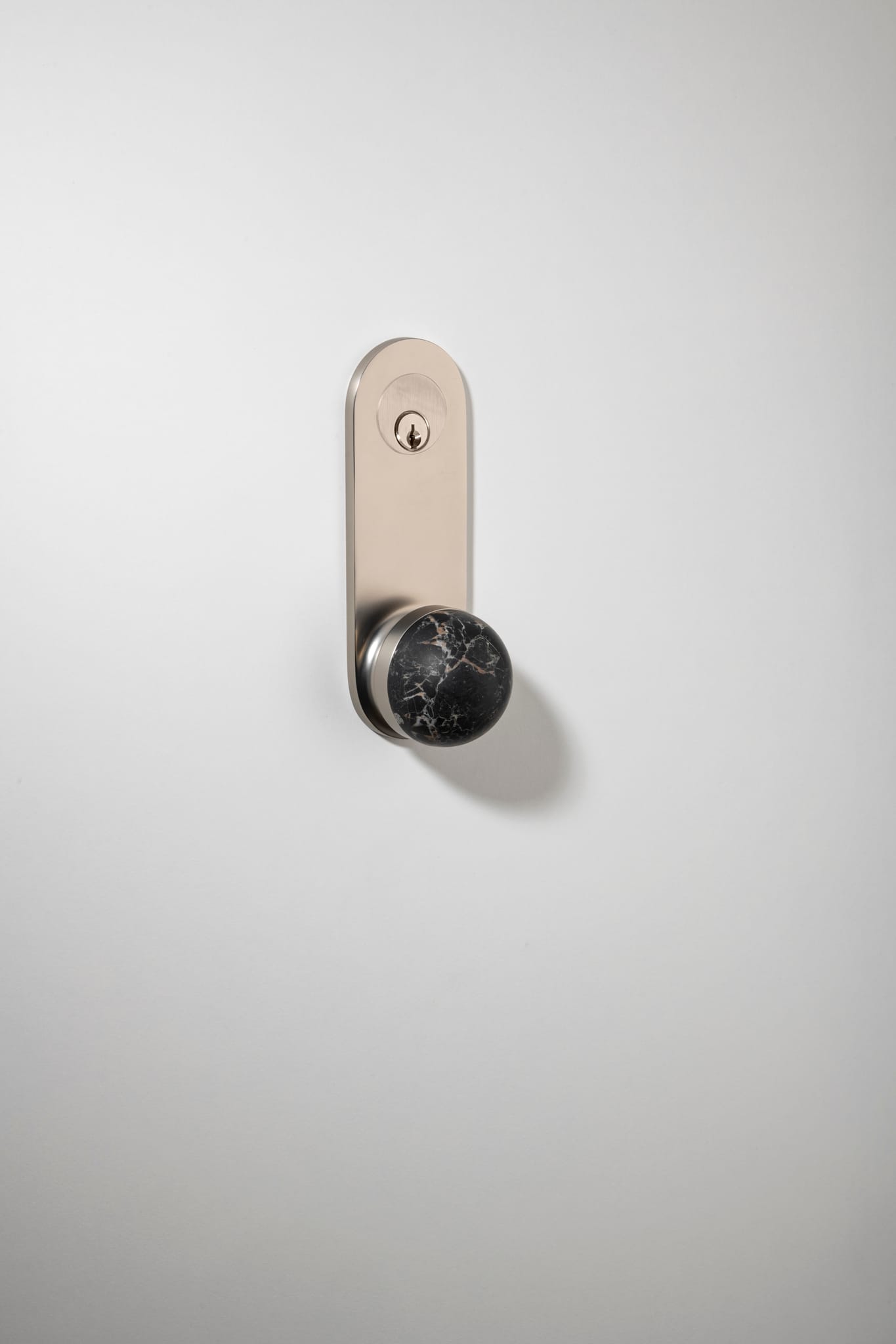 The H02 Knob on Backplate enhances the core knob design by adding a backplate extension. The combination of rounded and flat forms create a sophisticated aesthetic, also available with an optional integrated locking mechanism.