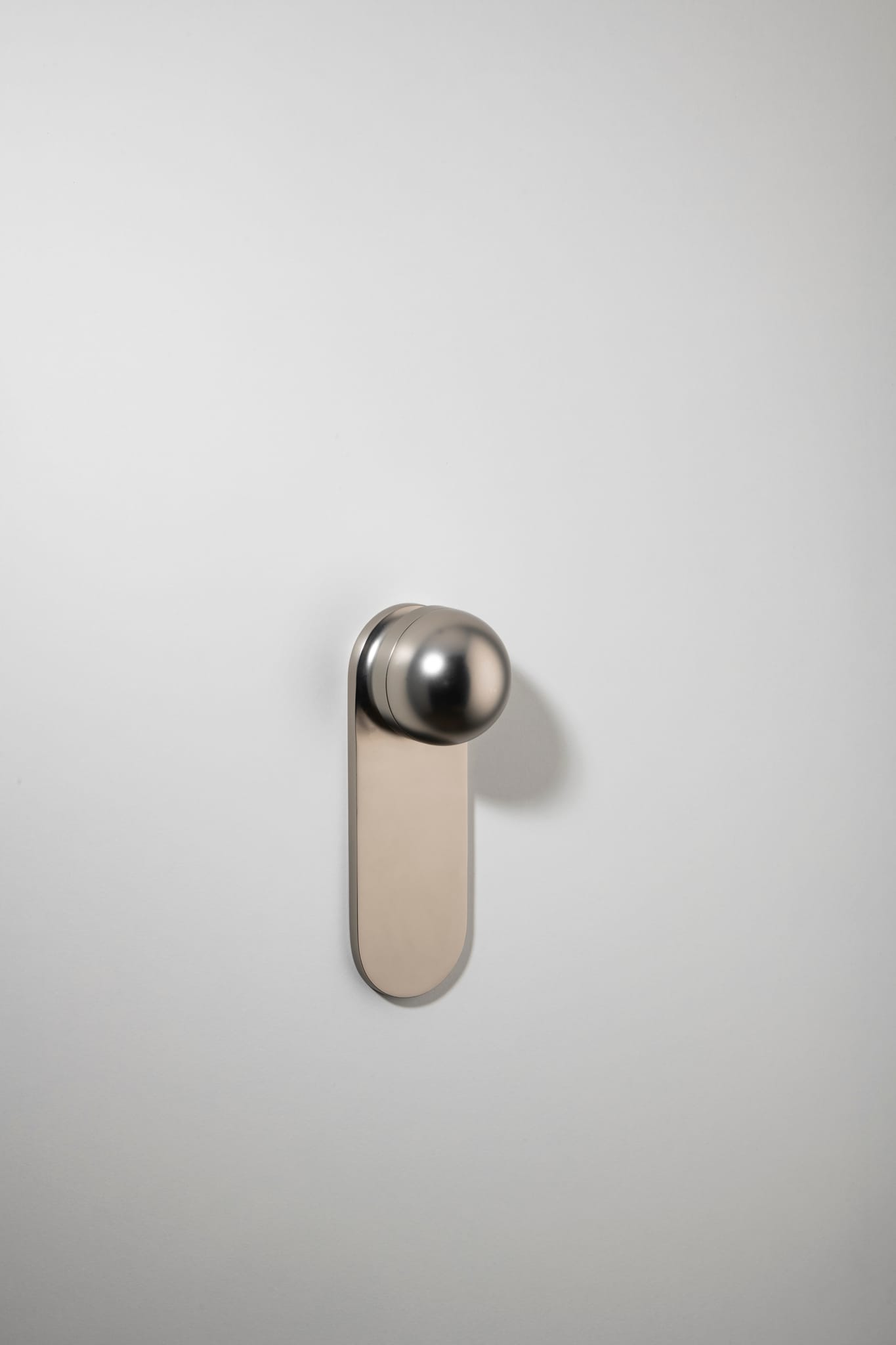 The H02 Knob on Backplate enhances the core knob design by adding a backplate extension. The combination of rounded and flat forms create a sophisticated aesthetic, also available with an optional integrated locking mechanism.