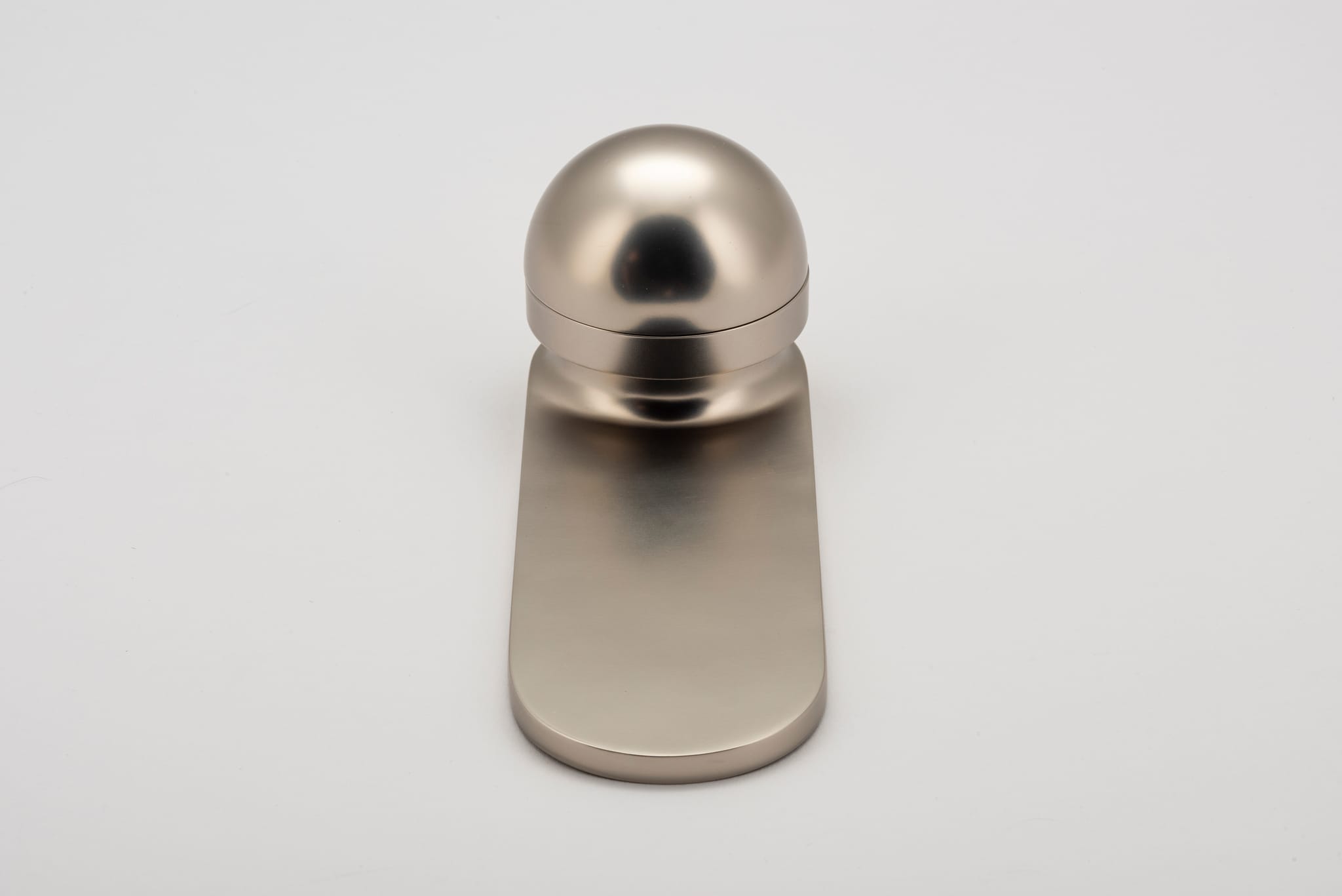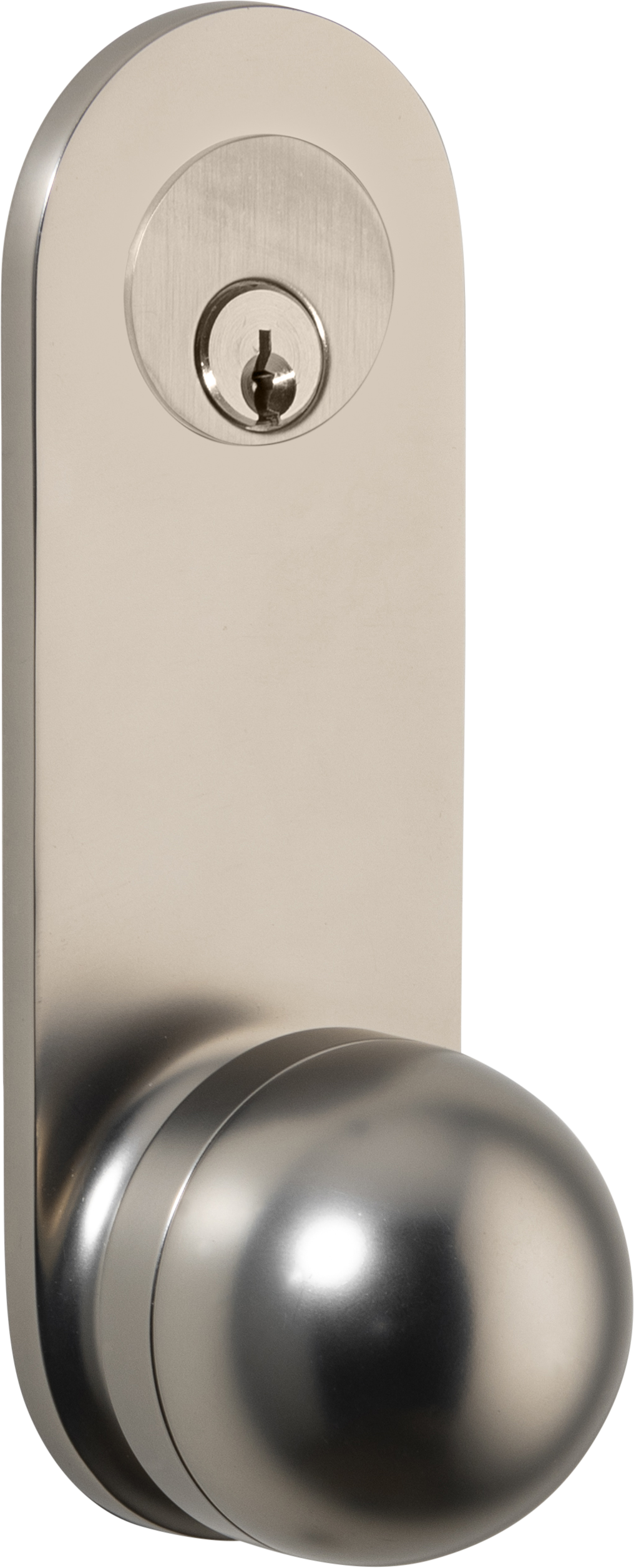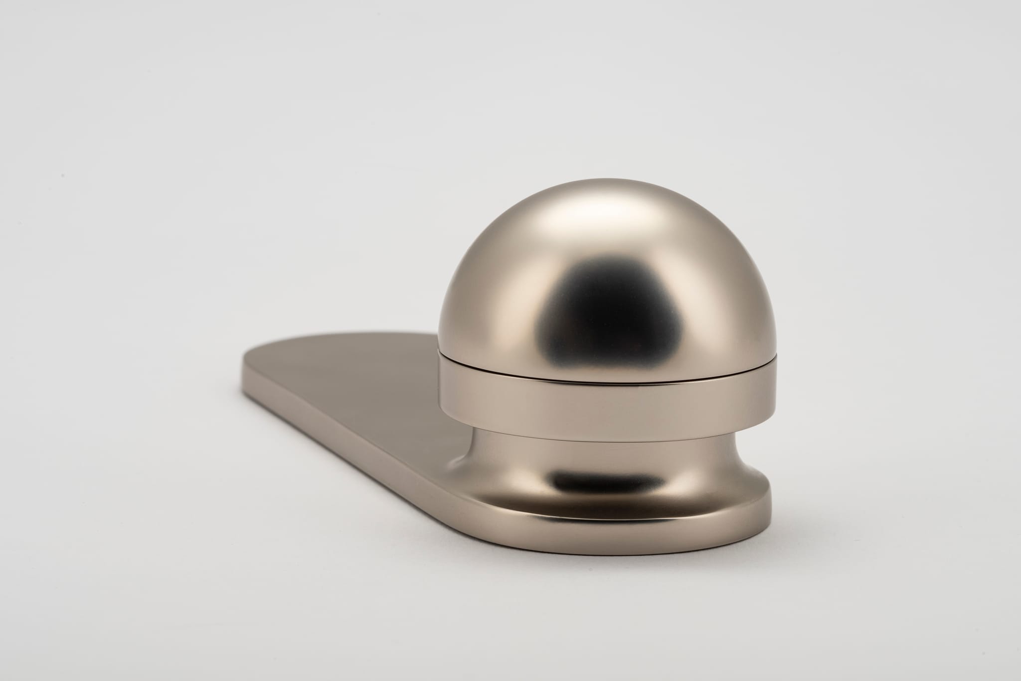 The H02 Knob on Backplate enhances the core knob design by adding a backplate extension. The combination of rounded and flat forms create a sophisticated aesthetic, also available with an optional integrated locking mechanism.
