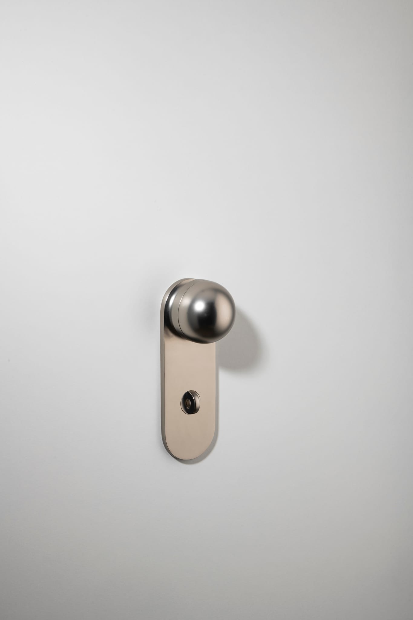 The H02 Knob on Backplate enhances the core knob design by adding a backplate extension. The combination of rounded and flat forms create a sophisticated aesthetic, also available with an optional integrated locking mechanism.