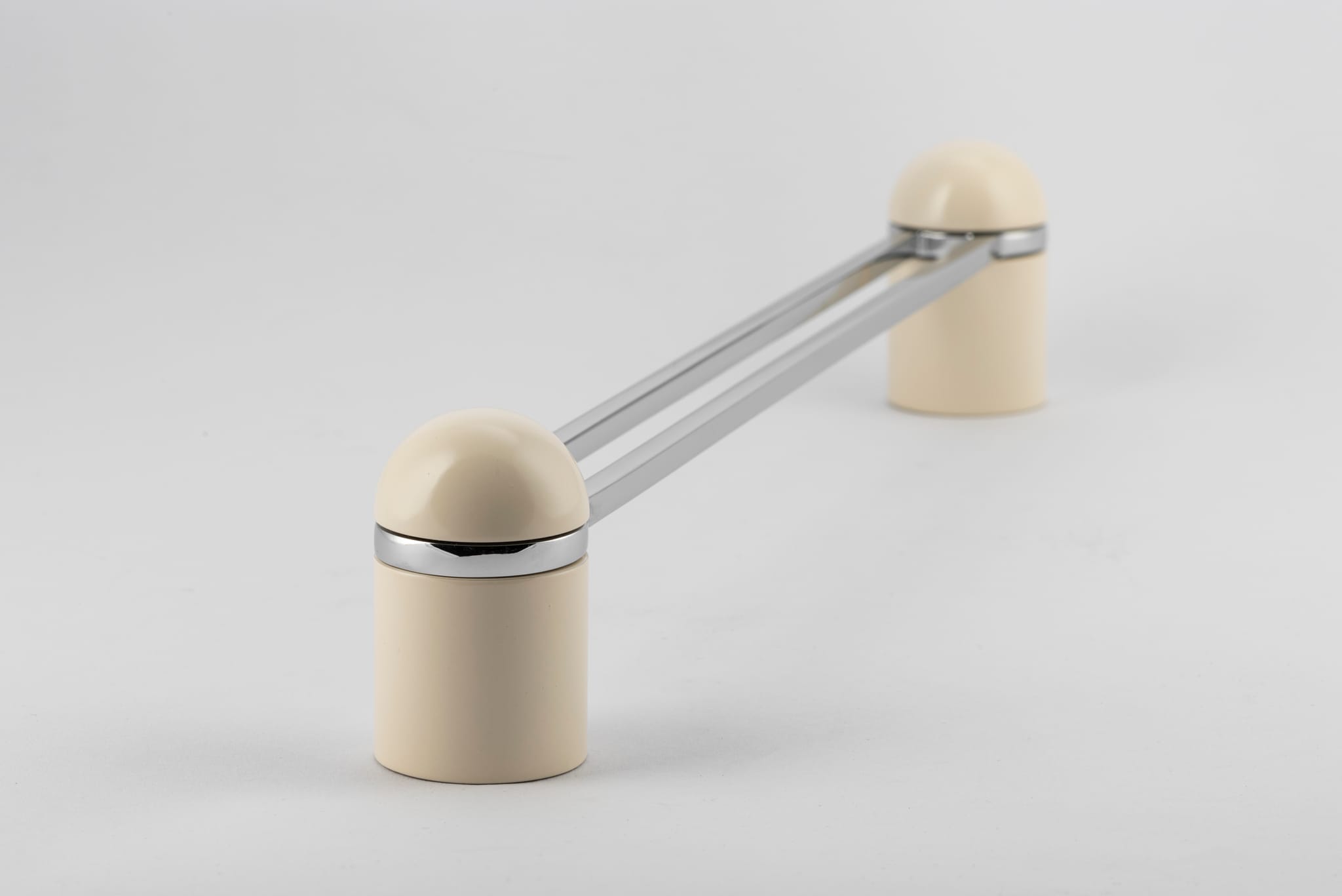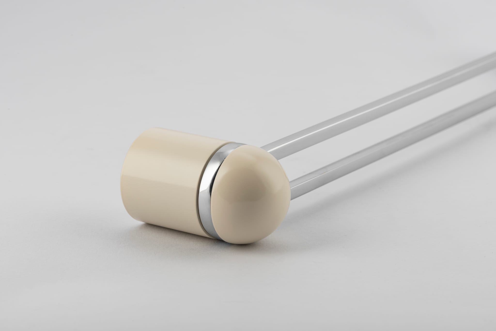 With a uniquely rich cream tone, the Bone finish exhibits a dense, subtly clay-like texture, ensuring both durability and a distinctive tactile quality. Crafted from highly durable UV resistant powder-coat, Bone allows precise shaping into geometric contours, mirroring the appearance of a glazed enamel and delivers an unexpectedly cool touch. The tone, thoughtfully chosen, imparts a sense of warmth and timelessness, harmonising effortlessly with various materials, from marble to metals, to create a versatile and cohesive palette.