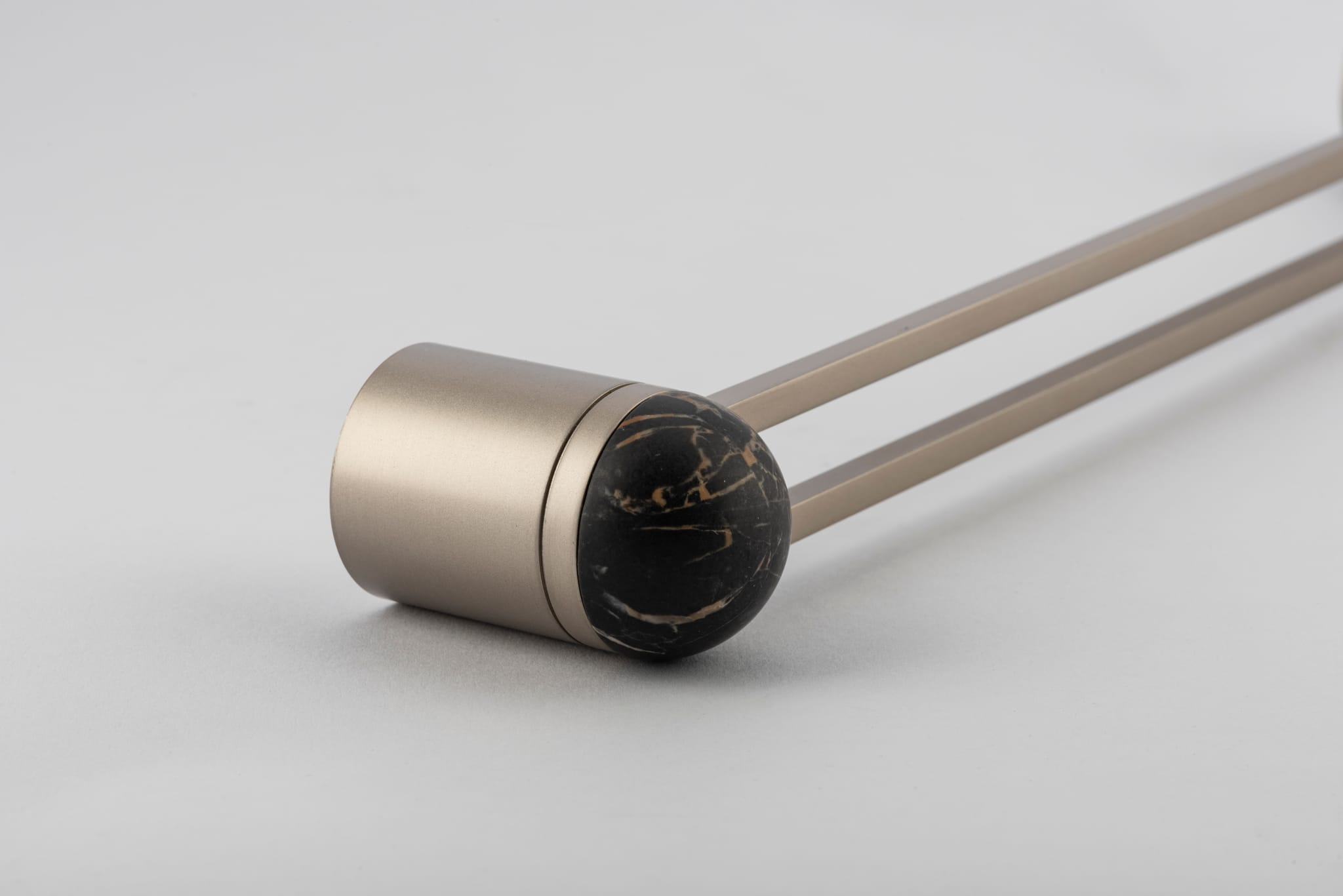 With a rich and intricate grain pattern set against an onyx backdrop, Portoro Gold is a highly coveted stone. Characterised by crystalline geometric forms, this material brings visual and tactile complexity. Portoro Gold is reimagined for a modern aesthetic, creating a striking contrast with other materials in the collection. As with all natural materials, expect a beautiful variation in both degree and tone of veining, making each piece truly distinctive.