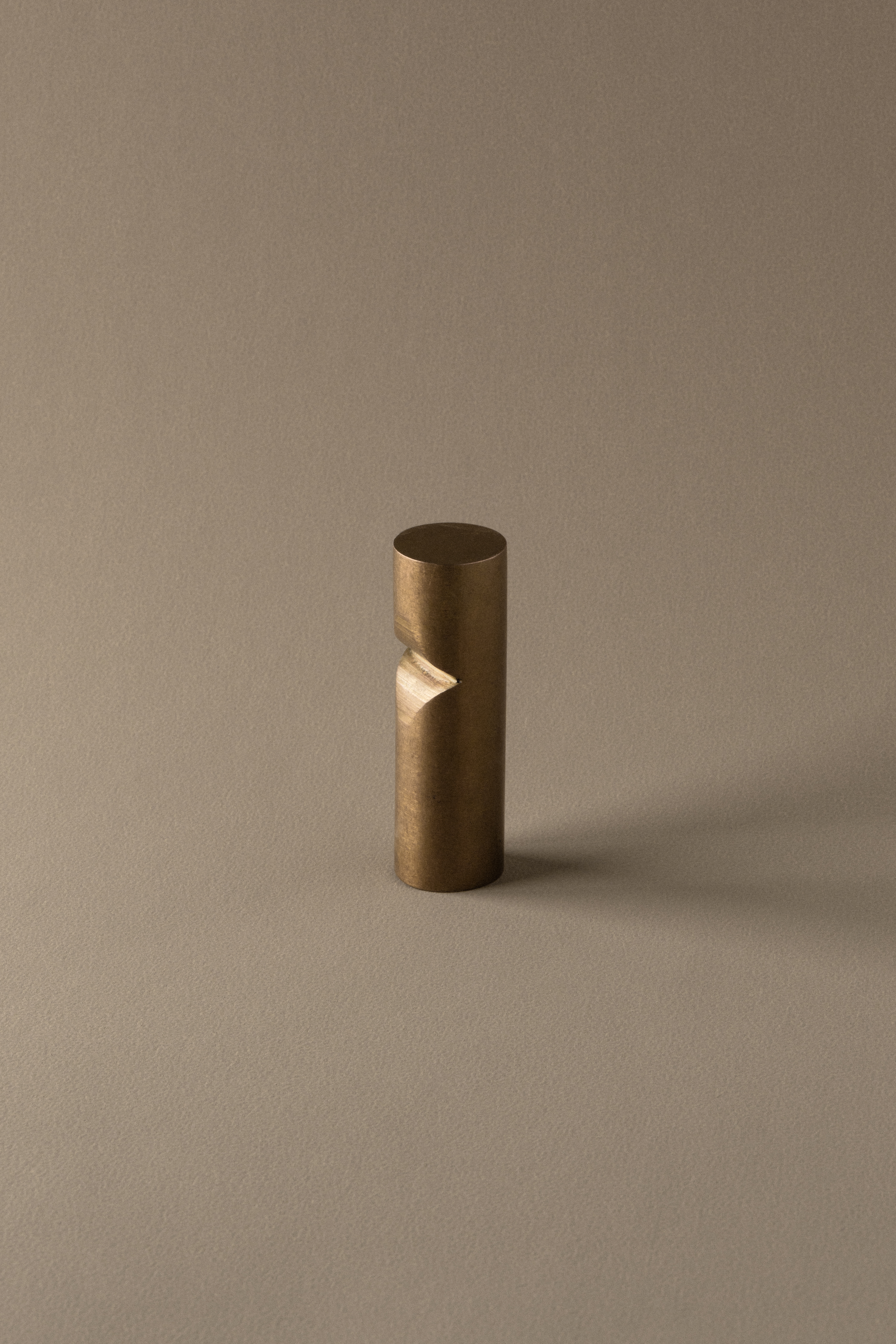 The raw long-lasting, hard-wearing Bronze material exposes the distinctive earthy hue, contextualising the minimal process. The bright surface texture oscillates between a vivid metallic gold and deeper ochre tone. Left to oxidise, as it darkens it reveals a lived history and takes on a new form.