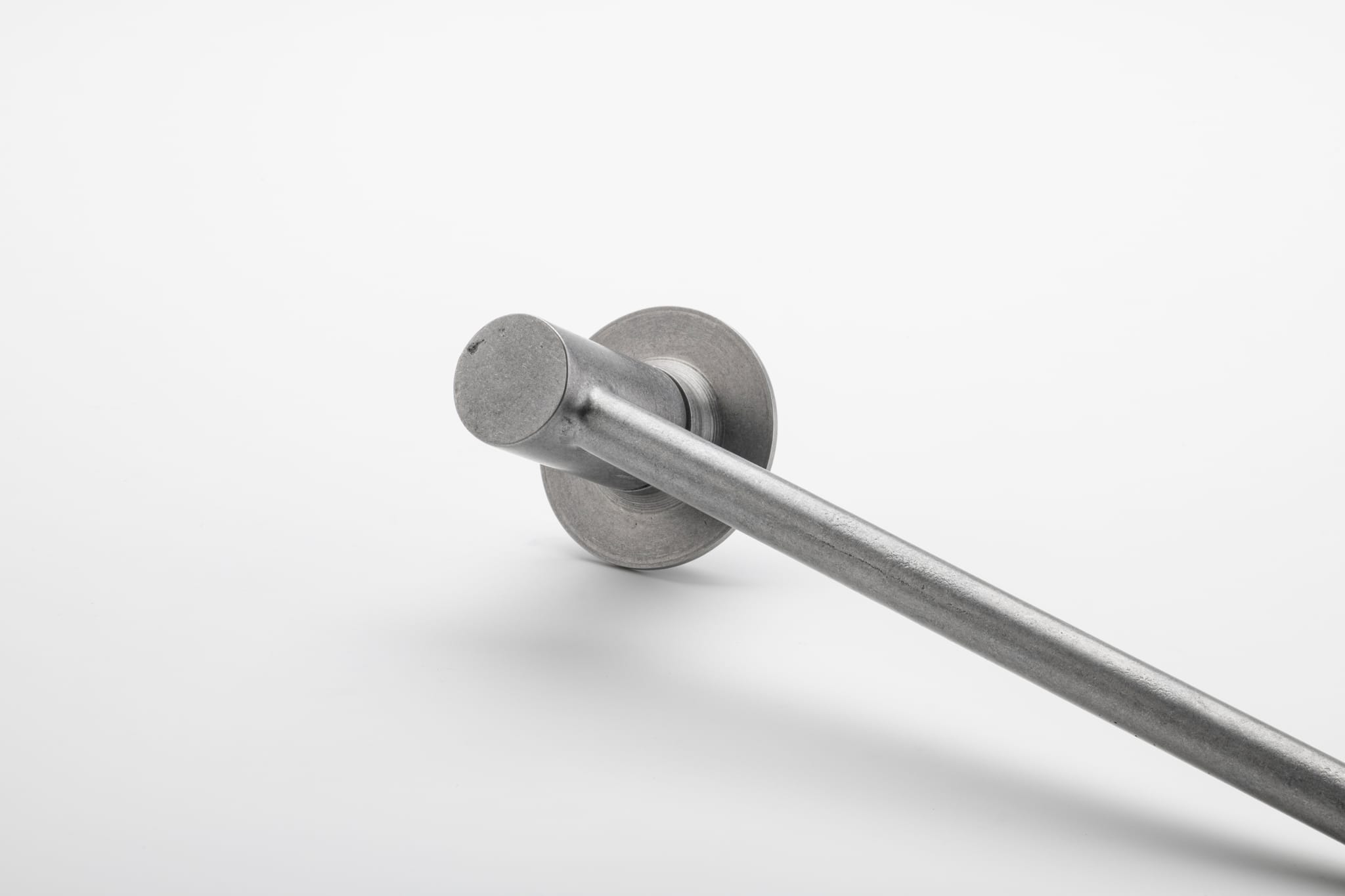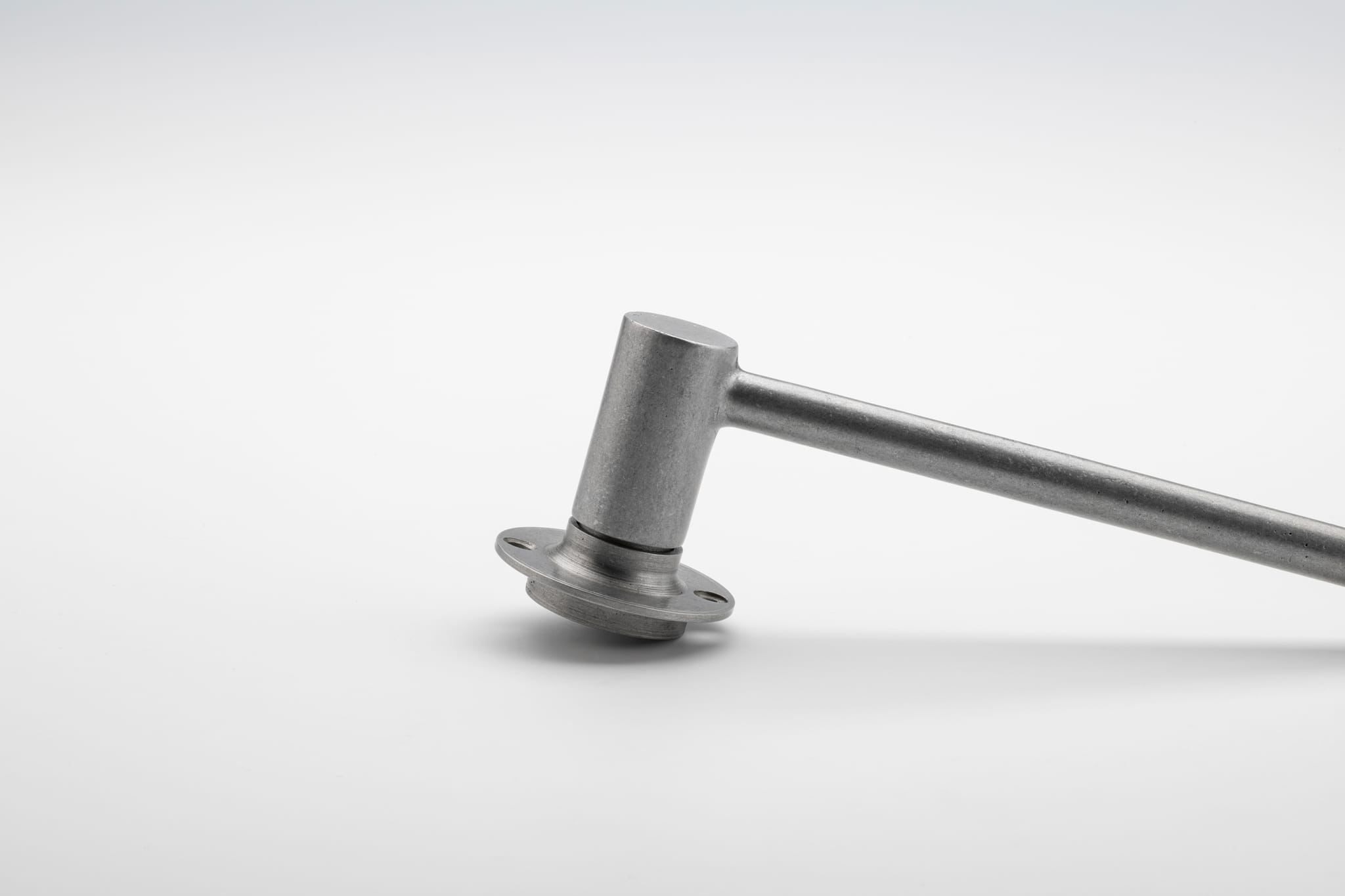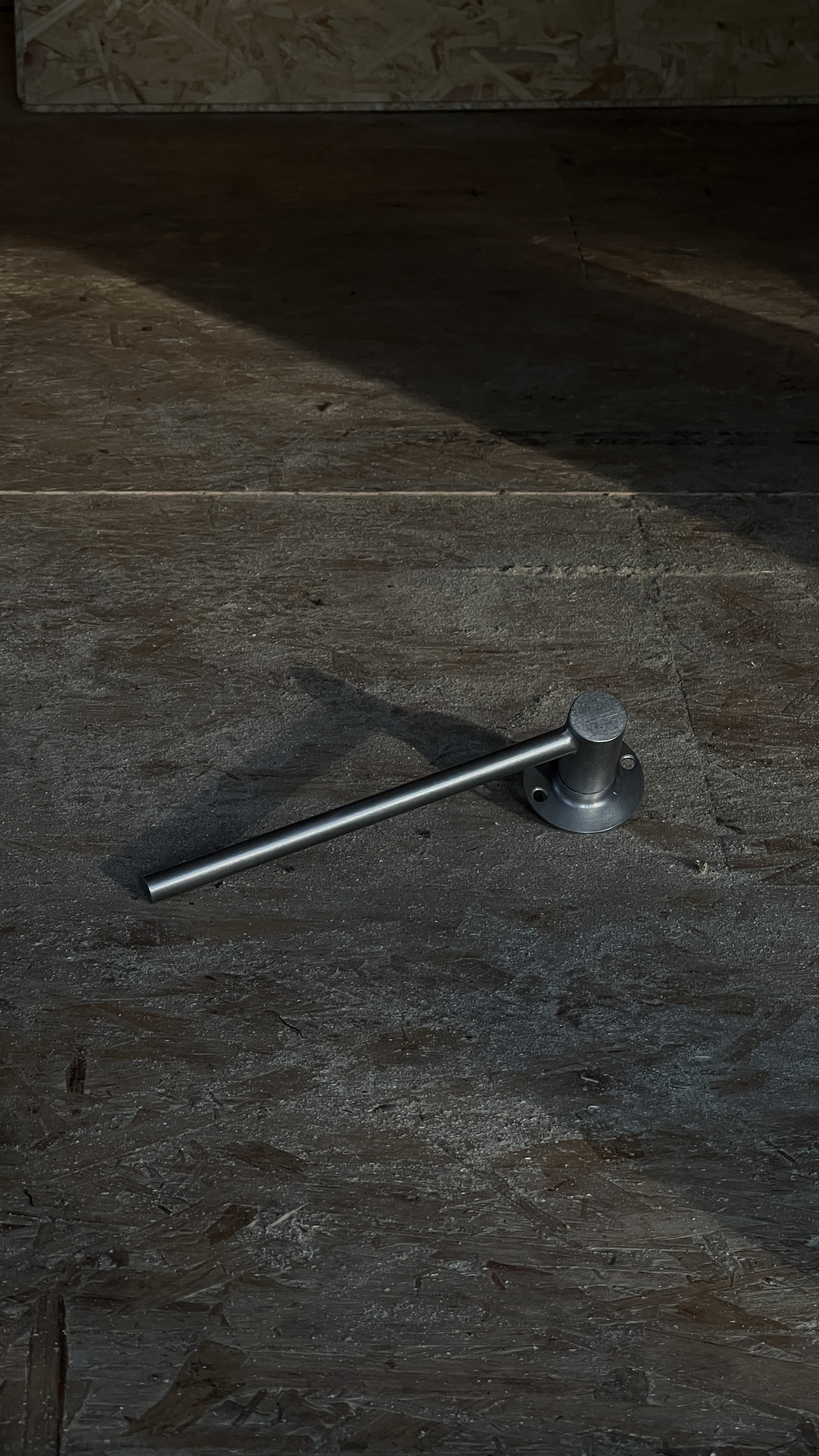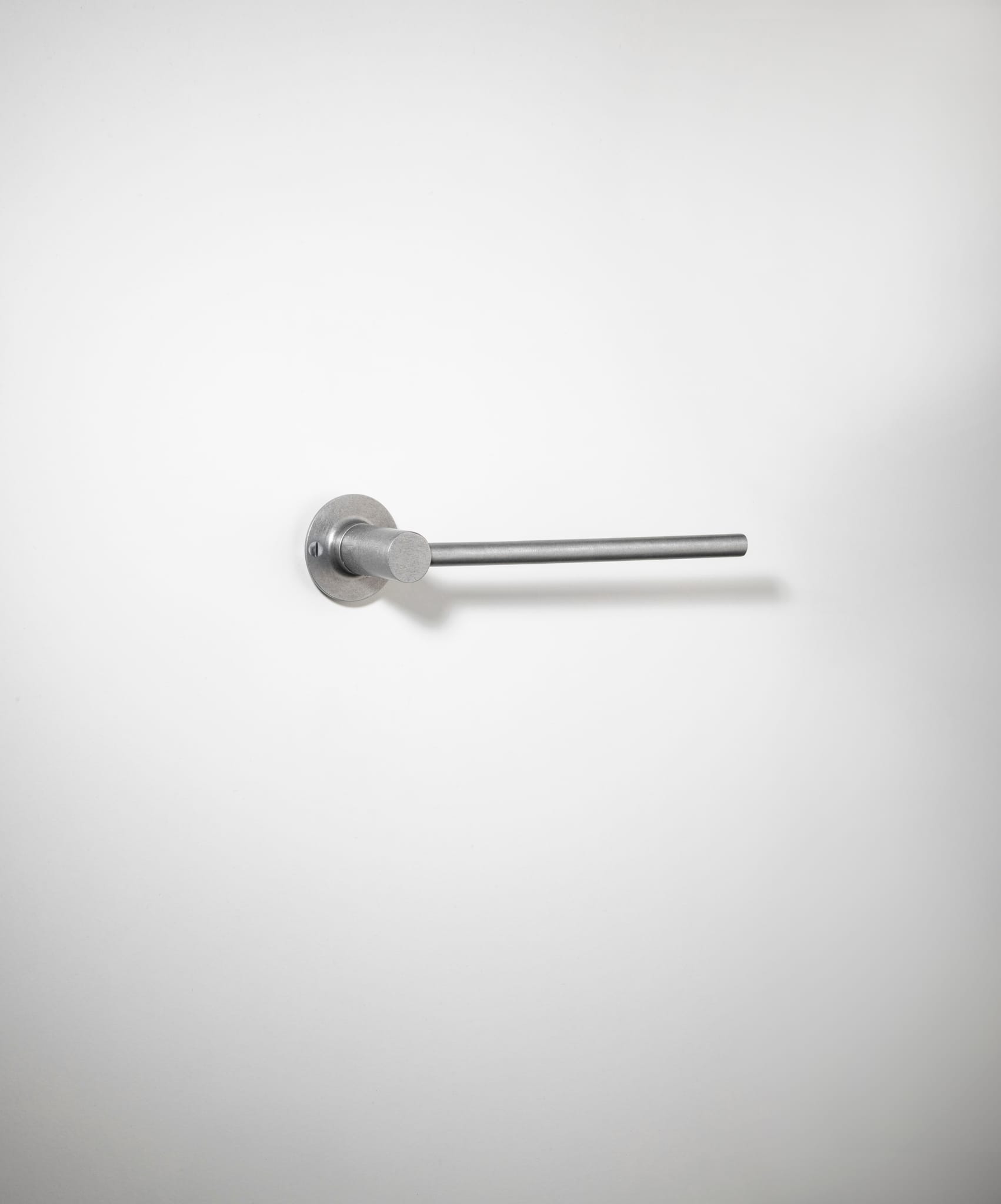 Within its statement form, Lever 01 celebrates an uncanny junction - the delight in the joint and the proportion of the cantilever. A long handle juts out from the small cylindric form, connecting to the base, continuing character beyond the expected. This generous expression is juxtaposed in a minimal thickness, anchoring at the joint. Australian Design No 202216356
