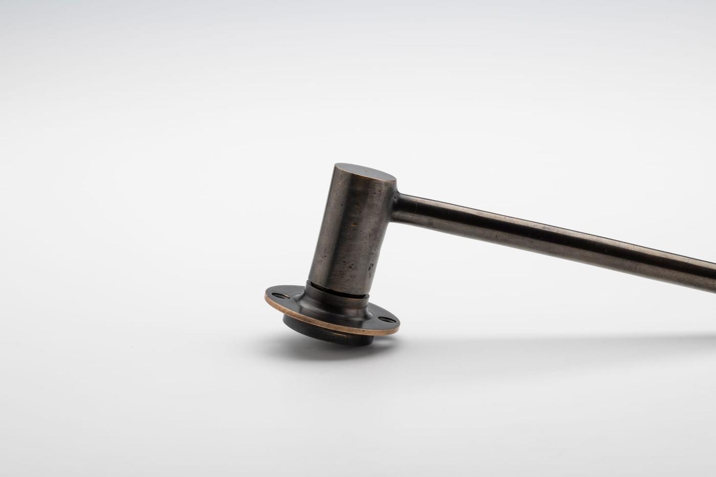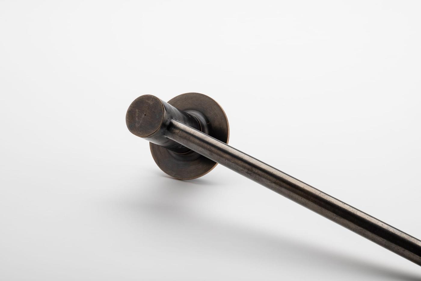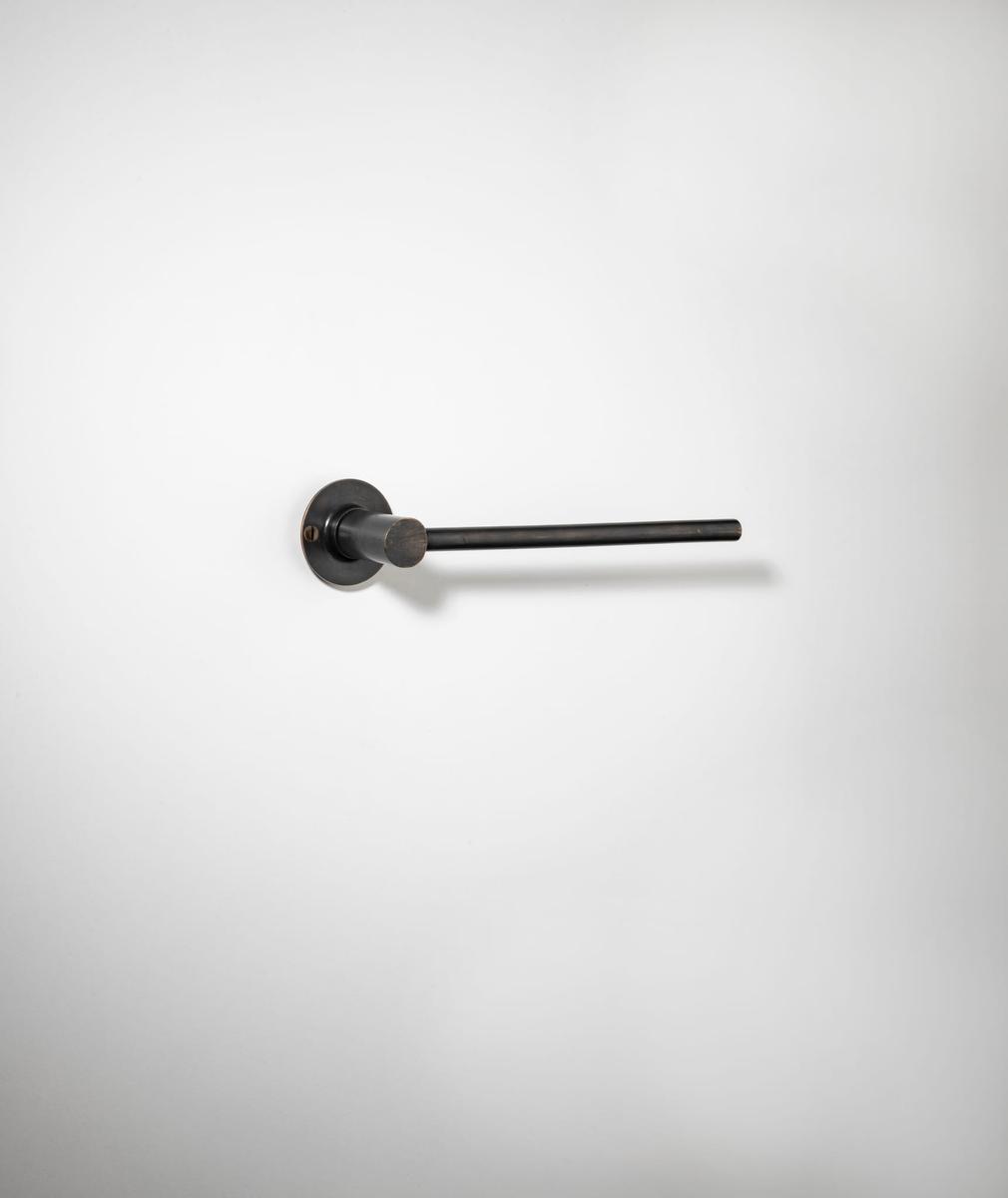 Within its statement form, Lever 01 celebrates an uncanny junction - the delight in the joint and the proportion of the cantilever. A long handle juts out from the small cylindric form, connecting to the base, continuing character beyond the expected. This generous expression is juxtaposed in a minimal thickness, anchoring at the joint. Australian Design No 202216358