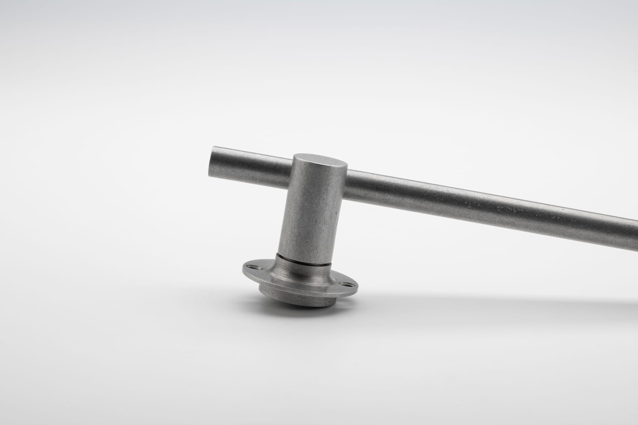 Lever 02 reflects an unflinching experimentation of design, using timeless metals and processes to reinterpret the ordinary, resulting in bold piece. A long handle sits upon the small cylindric structure, appearing to balance; the minimalist rod lends itself to the user, an invitation to connect. Australian Design No 202216351.