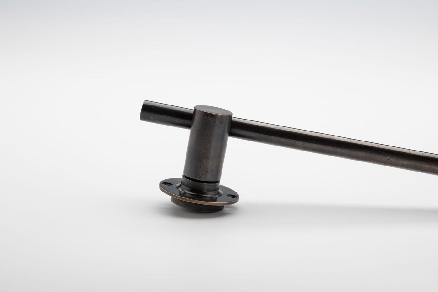 Lever 02 reflects an unflinching experimentation of design, using timeless metals and processes to reinterpret the ordinary, resulting in bold piece. A long handle sits upon the small cylindric structure, appearing to balance; the minimalist rod lends itself to the user, an invitation to connect.Australian Design No 202216351