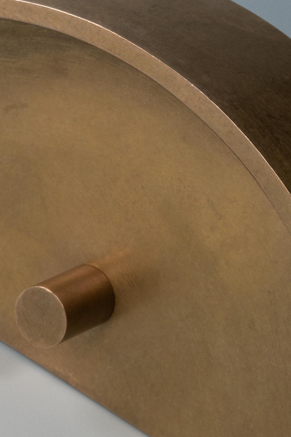 The raw long-lasting, hard-wearing Bronze material exposes the distinctive earthy hue, contextualising the minimal process. The bright surface texture oscillates between a vivid metallic gold and deeper ochre tone. Left to oxidise, as it darkens it reveals a lived history and takes on a new form.
