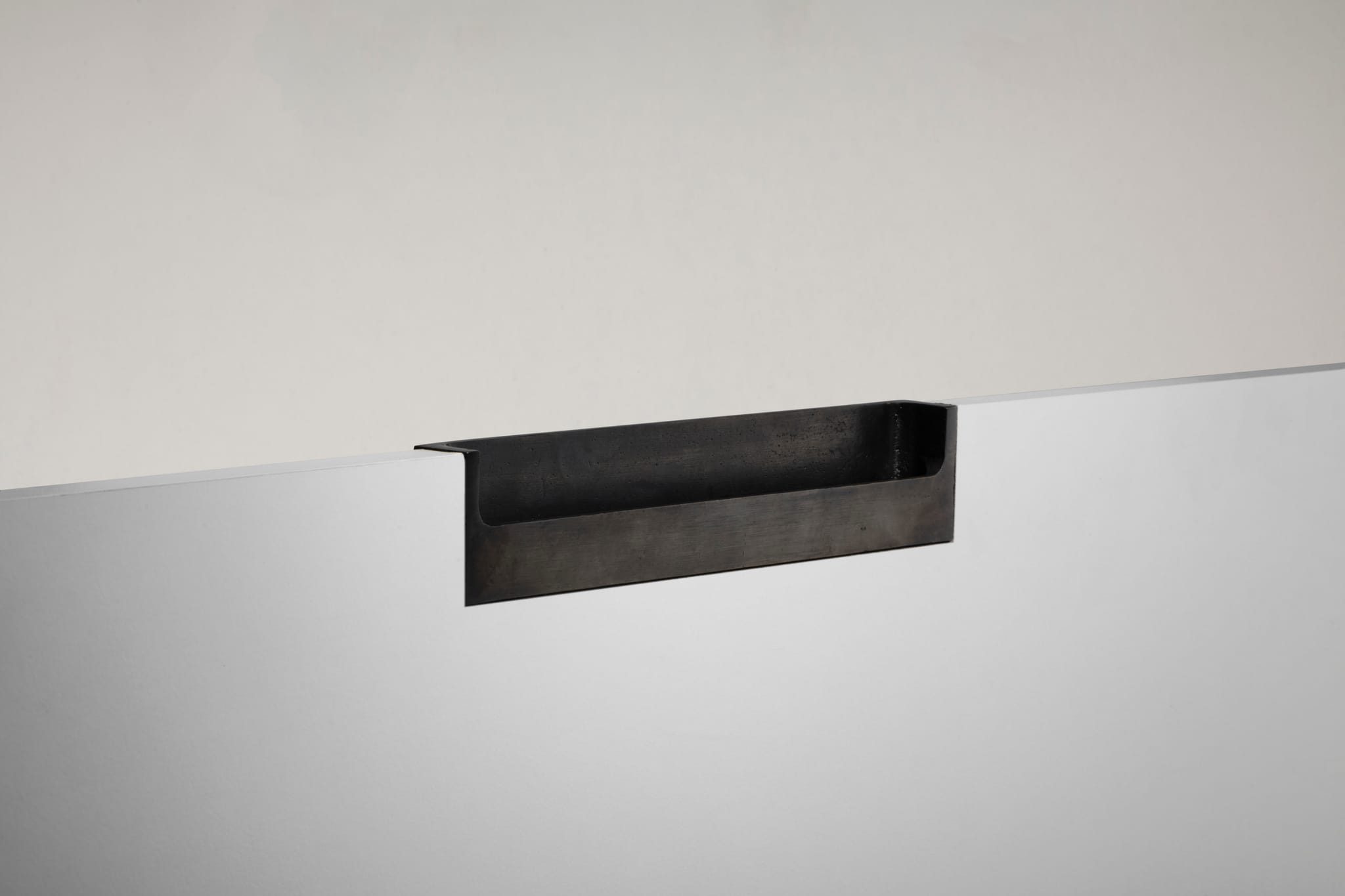 Pull 04 honours simple, robust joinery pulls with a sculpted interior that divulges the sand-casting journey. The drawer pull uncovers firm and decisive edges, yet the surface is alive with texture, evidence of the crafted handmade process.