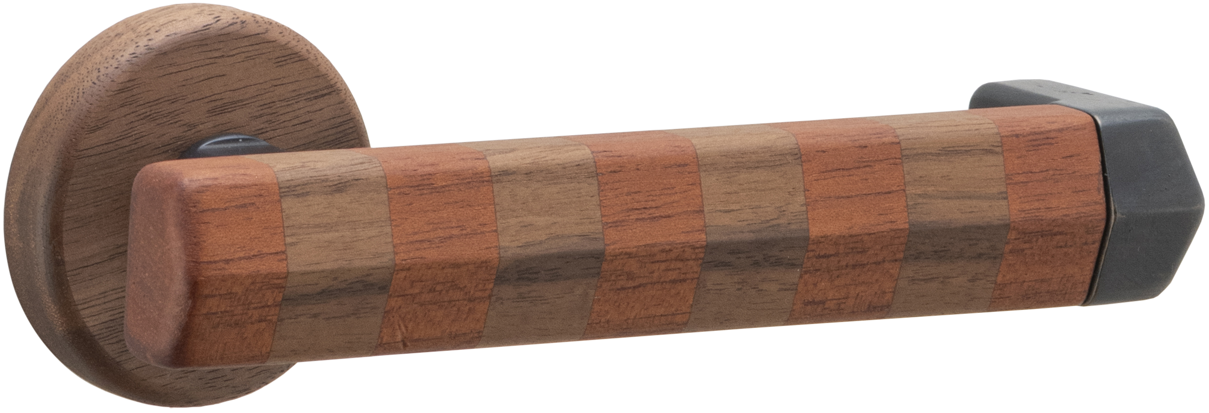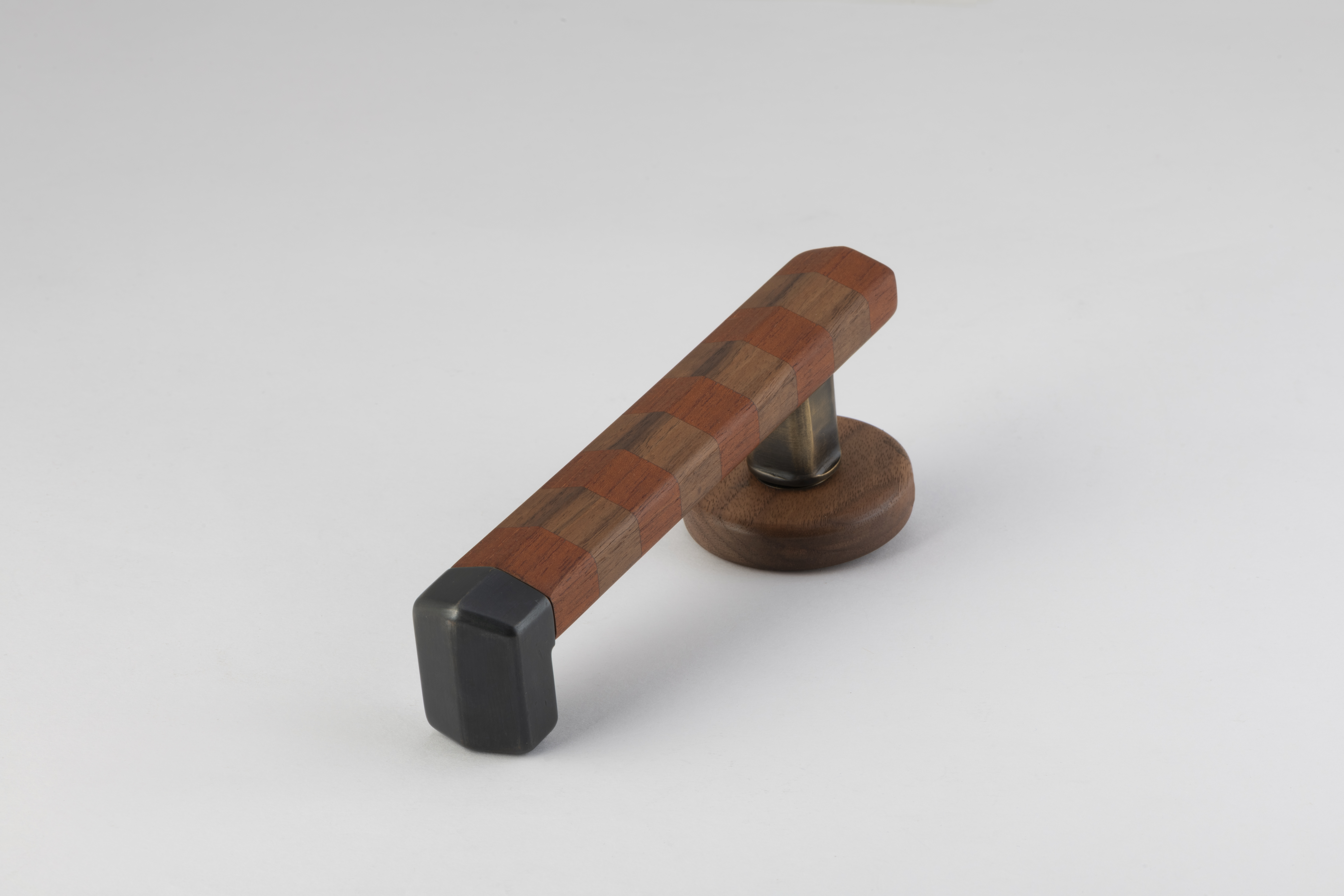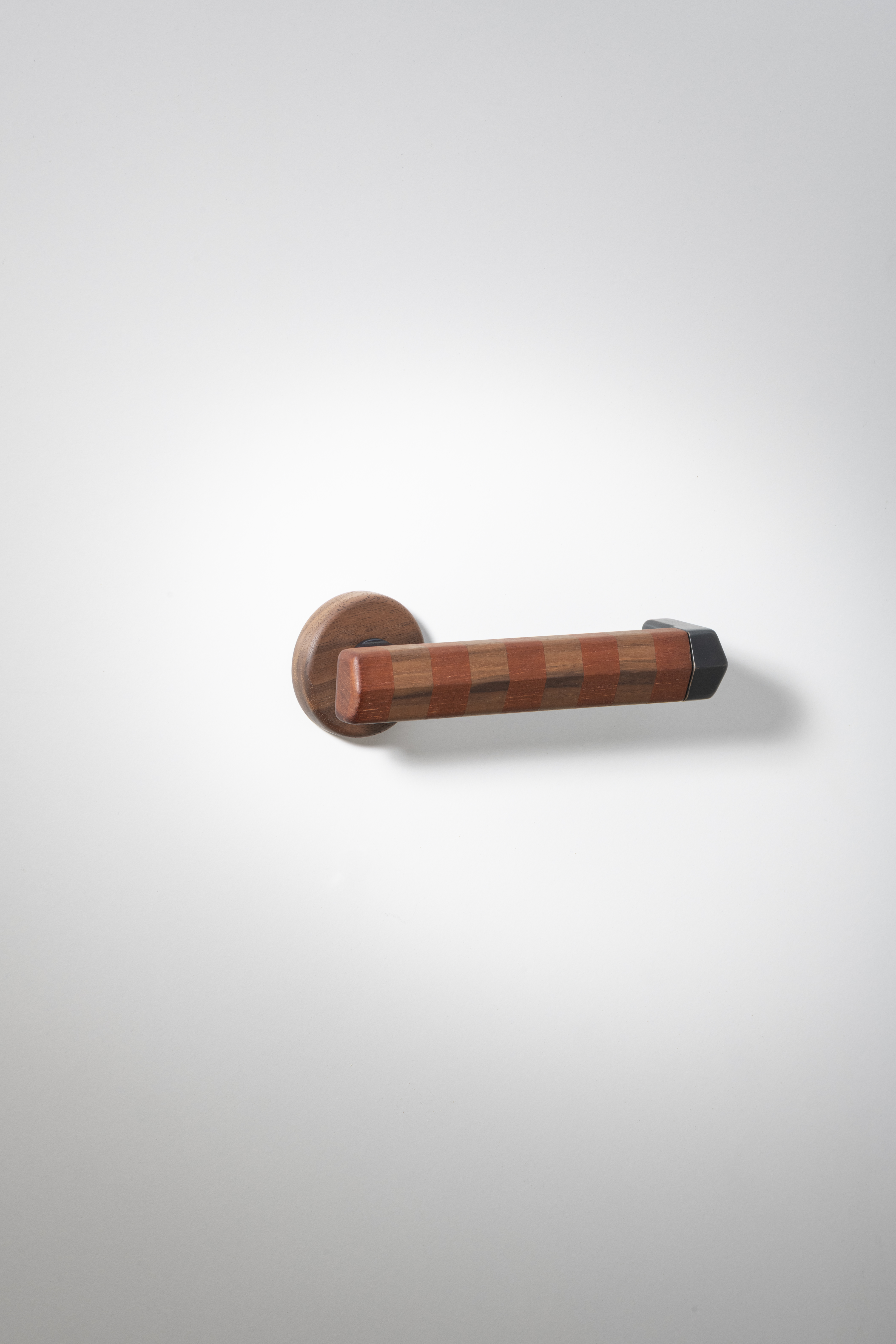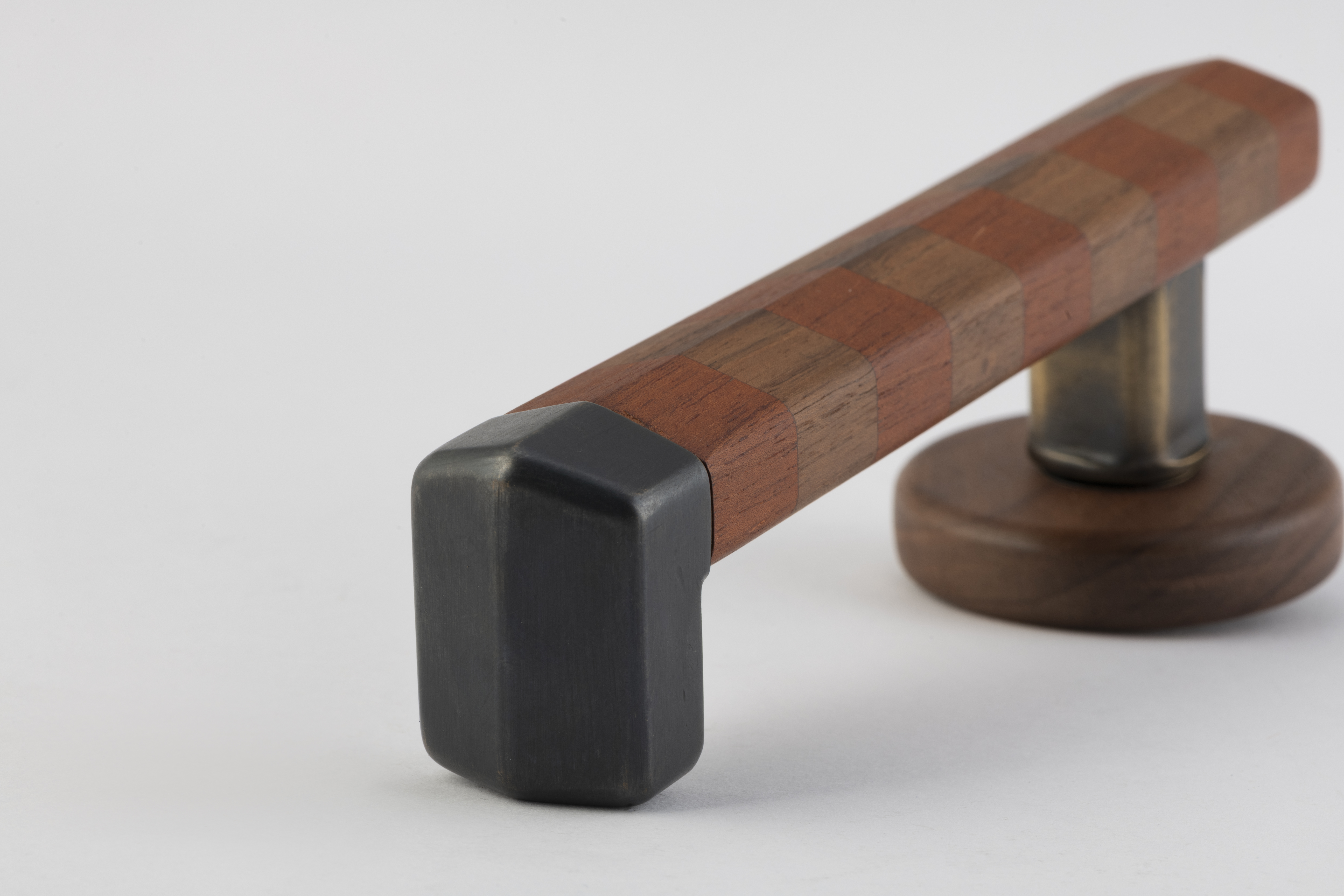 Like its name suggests, this universal lever plays on the term ‘straight shooter’ given its easy-to-grab horizontal plane. Superbly crafted from solid timber species that span the globe, it is offered in three different striped colourways. Contrasting natural tones range in intensity from deep brown paired with blonde or an earthy red shade, to more vibrant bands marrying rich aubergine and tangerine for bolder entry statements. Smooth and warm upon contact, its subtly curved edges elevate every door it adorns. Also available in Patinated Bronze, along with a Return version for hospitality and commercial purposes, the bronze touch points will continue to alchemise over time to rich golden shades. Patinated Bronze pieces are suitable for internal and external use. This product comes with face fix wood screws and tie bolts. All fixings are concealed.