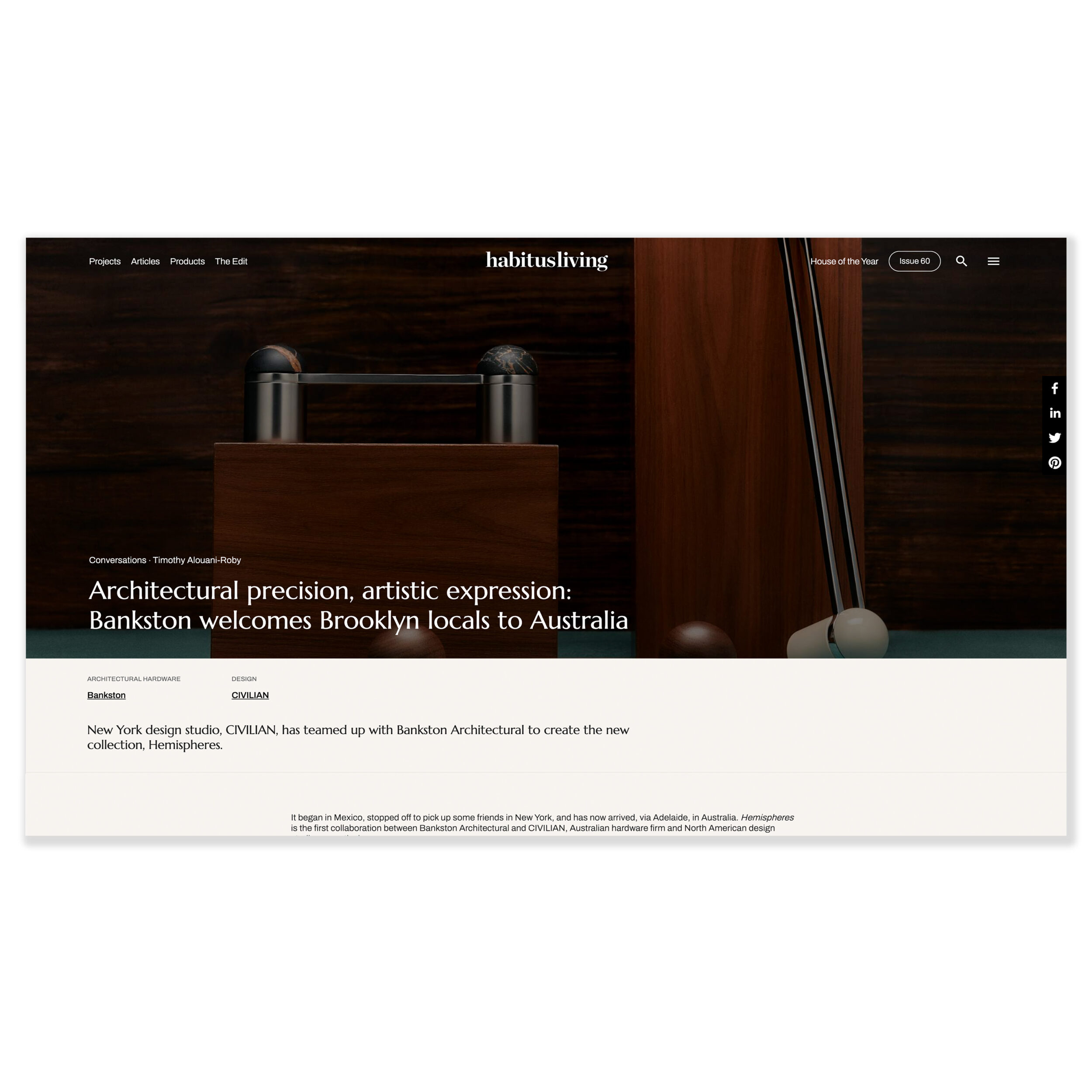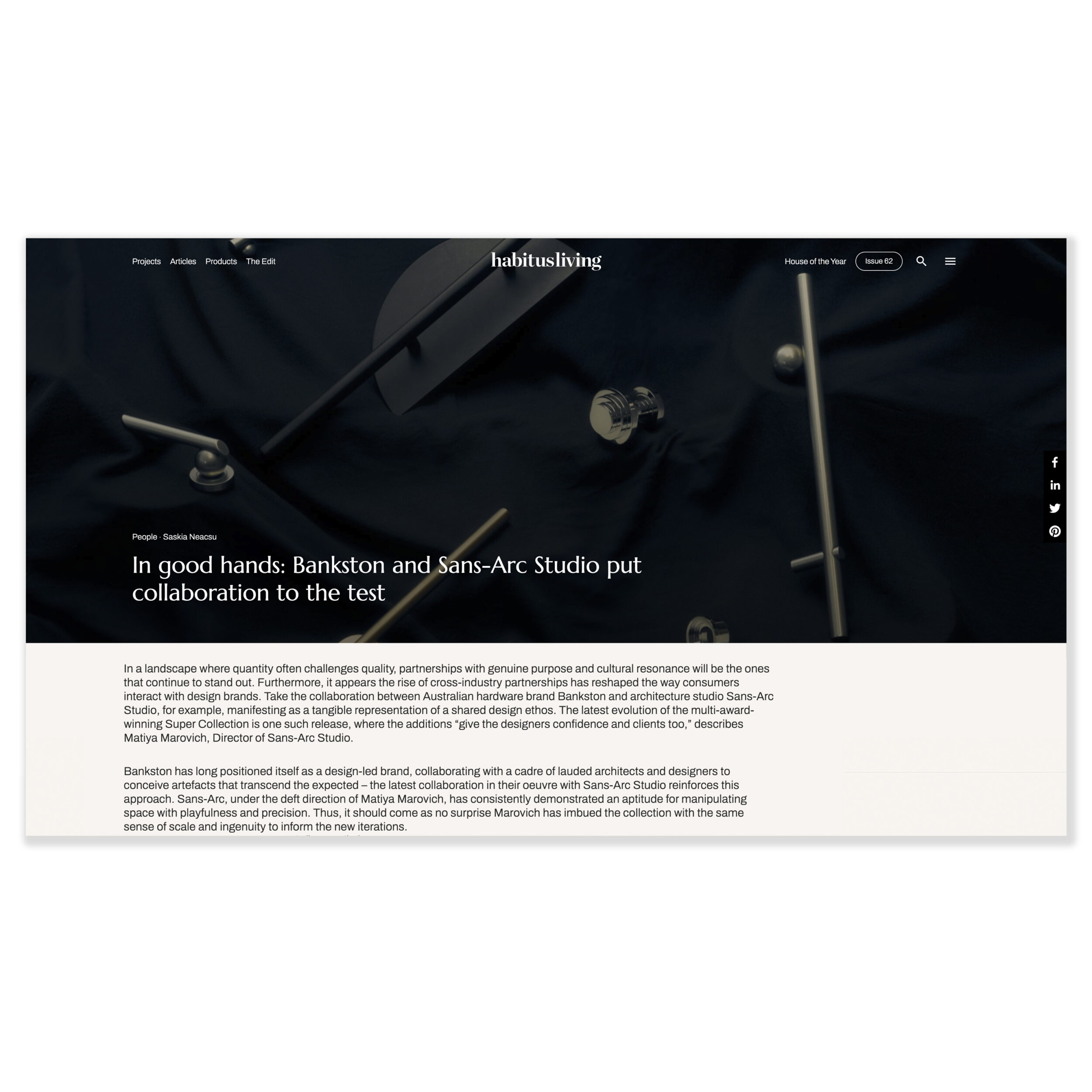 Explore Bankston’s latest collections featured in some of the most prestigious magazines and media, including Habitus,Vogue Living, Grand Designs and more.